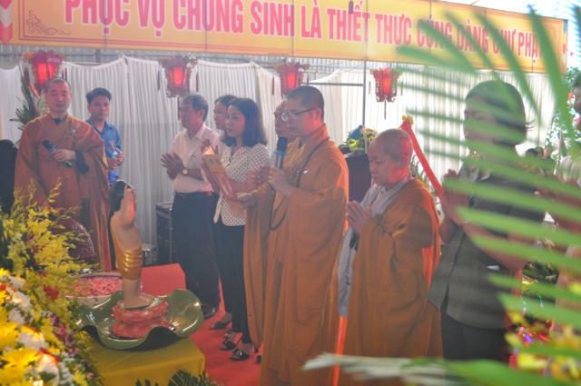Thay mặt cho lãnh đạo chính quyền, bà Nguyễn Thị Lung đã có lời phát biểu, chúc mừng toàn thể Tăng ni, Phật tử có một mùa Phật đản an lạc trong niềm hoan hỷ chung của nhân loại. Đồng thời, bà cũng bày tỏ mong muốn tiếp tục nhận được sự quan tâm, đóng góp của Phật giáo vào các hoạt động ích nước, lợi dân góp phần phát triển quê hương ngày càng giàu đẹp. Nhân dịp này, đại diện lãnh đạo các ban ngành chức năng đã tặng những lẵng hoa tươi thắm chức mừng buổi Đại lễ.