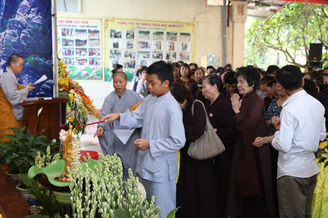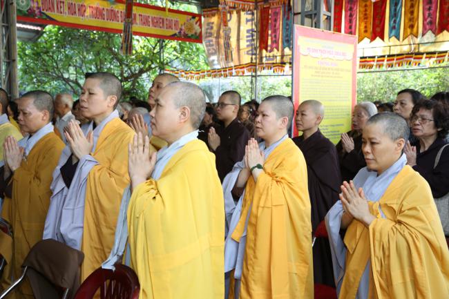 Chứng minh buổi lễ có: Thượng tọa Thích Chiếu Tuệ – Ủy viên HĐTS, Phó Ban Hoằng pháp TƯ GHPGVN, Trưởng Ban Hoằng pháp GHPGVN thành phố Hà Nội; Ni trưởng Thích Đàm Hán – Viện chủ Tổ đình chùa Bộc; Ni sư Thích Đàm Minh – Ủy viên BTS GHPGVN thành phố Hà Nội, Trưởng BTS GHPGVN quận Đống Đa, trưởng Ban tổ chức Đại lễ cùng chư tôn đức Tăng ni trong BTS GHPGVN quận Đống Đa và đông đảo quý Phật tử thập phương cùng về tham dự.