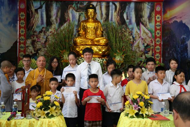 Nhân dịp này, thực hiện lời dạy của Đức Phật và cũng là văn hóa truyền thống tương thân tương ái tốt đẹp của người Việt Nam, BTS GHPGVN quận Đống Đa đã trao tặng 46 phần quà cho các em học sinh nghèo vượt khó trên địa bàn quận, với mong muốn các em sẽ là những con ngoan trò giỏi, vượt lên mọi khó khăn để học tập tốt, tu dưỡng đạo đức sau này là tương lai của đất nước.