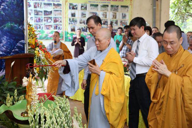 Chứng minh buổi lễ có: Thượng tọa Thích Chiếu Tuệ – Ủy viên HĐTS, Phó Ban Hoằng pháp TƯ GHPGVN, Trưởng Ban Hoằng pháp GHPGVN thành phố Hà Nội; Ni trưởng Thích Đàm Hán – Viện chủ Tổ đình chùa Bộc; Ni sư Thích Đàm Minh – Ủy viên BTS GHPGVN thành phố Hà Nội, Trưởng BTS GHPGVN quận Đống Đa, trưởng Ban tổ chức Đại lễ cùng chư tôn đức Tăng ni trong BTS GHPGVN quận Đống Đa và đông đảo quý Phật tử thập phương cùng về tham dự.