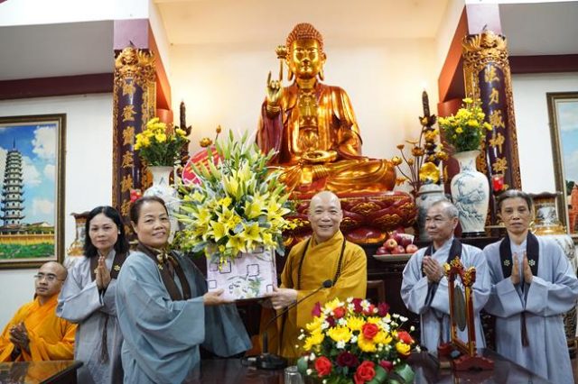 Tại đây, Hòa thượng trụ trì Thích Bảo Nghiêm đã bày tỏ niềm hoan hỷ trước sự kính mến của các Phật tử dành tặng tới quý Thầy trong ngày 20 – 11. Theo Hòa thượng, tuy ngày 20/11 là ngày của thế gian, nhưng “Phật pháp bất ly thế gian pháp”, đạo Phật luôn đồng hành cùng dân tộc và gặp nhau tại điểm chung là tinh thần hiếu đạo. Ngày 20/11 là ngày người thế gian tri ân những thầy cô giáo đã dạy dỗ ta nên người, thì trong Phật giáo ngày 20/11 cũng chính là ngày để hàng Phật tử tri ân những vị Thầy khả kính đã “thay Thế Tôn truyền bá đạo màu”, giúp chúng sinh xa rời bể khổ sông mê, đi trên con đường chính pháp về bến bờ giải thoát giác ngộ. Hòa thượng mong rằng đại chúng hãy luôn sống trong tinh thần tri ân và báo ân, noi theo gương hiếu đạo của Đức Phật, tinh tiến tu học, mang những điều tốt đẹp của giáo lý Phật đà phổ cập dân gian, giúp cuộc sống luôn an vui hạnh phúc.