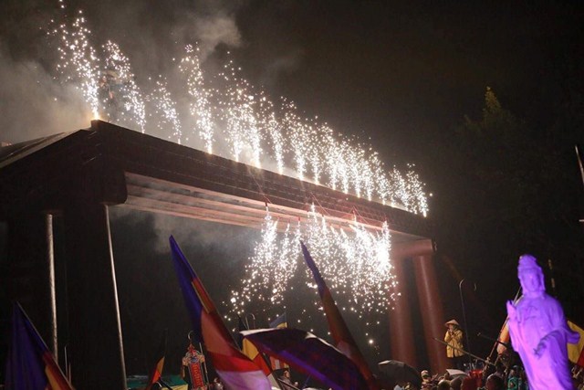 Thời khắc linh thiêng nhất của buổi lễ đã tới khi những ngọn nến đầu tiên được thắp sáng trên tay của các Phật tử, bên dòng Suối Yến lịch sử, thơ mộng, càng làm cho buổi lễ trở nên linh thiêng hơn, hòa cùng với đó là tiếng niệm danh hiệu Bồ Tát Quán Thế Âm Hương Tích: “ Nam Mô Hương Tích Sơn Quán Thế Âm Bồ Tát” trầm hùng, tha thiết, làm xua tan màn vô minh, si ám, xua tan đi mùa đông giá lạnh của miền Bắc. Mặc dù ngồi trên thuyền, trời mưa nhỏ, nhưng ai cũng cảm thấy ấm lòng, cảm thấy mình thật hạnh phúc, thật có phước khi được tham dự buổi lễ linh thiêng, và ý nghĩa này.