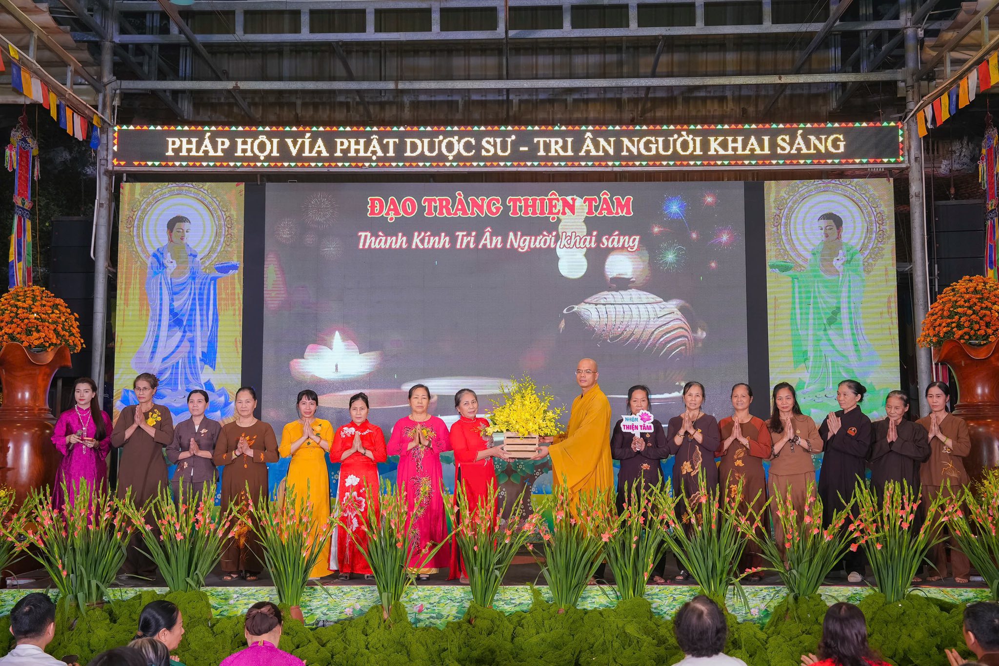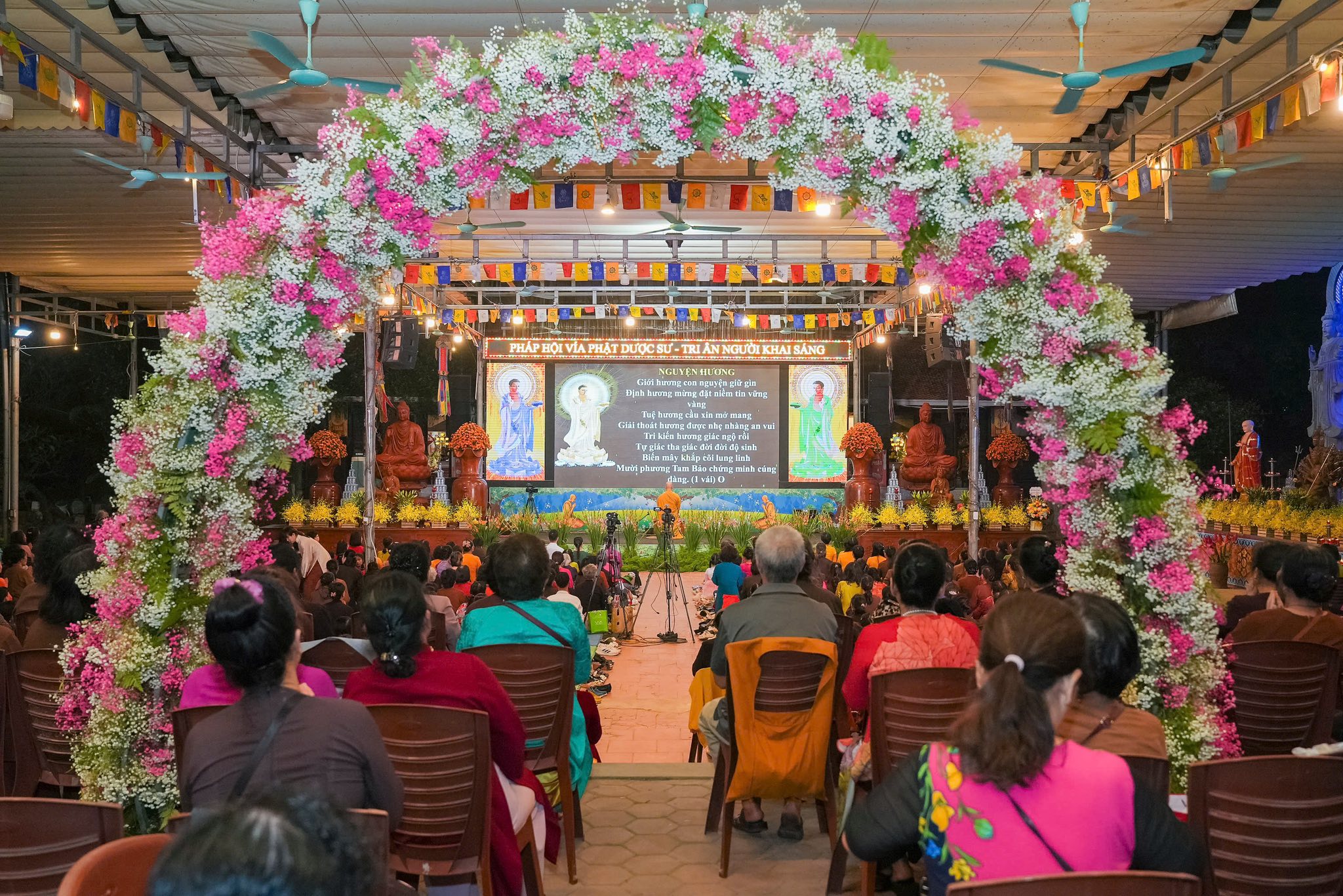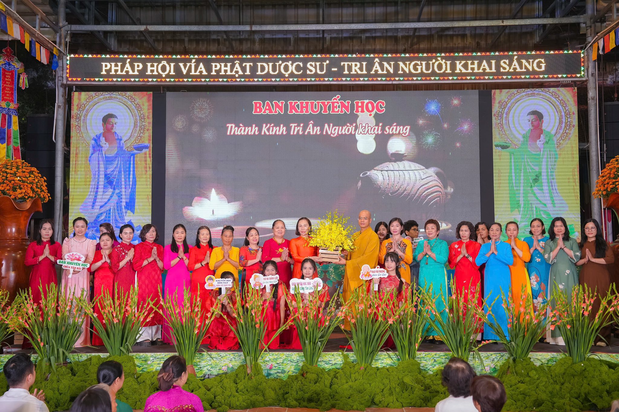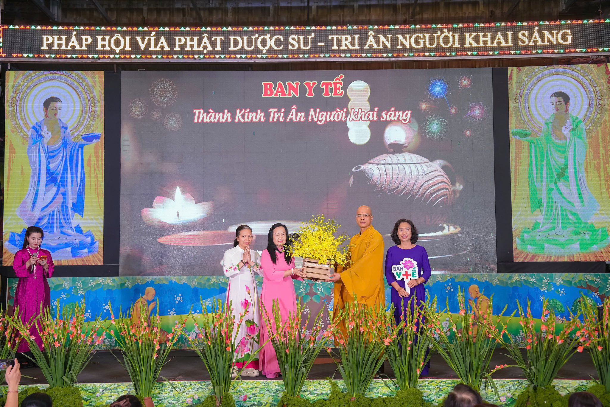 Phát biểu khai mạc buổi lễ, Đại đức Thích Quảng Hiếu đã cho toàn thể đại chúng biết về ý nghĩa, tên gọi của Đức Phật Dược Sư, cũng như ý nghĩa của ngày Nhà giáo Việt Nam 20/11. Theo đó, Đức Phật Dược Sư còn có tên gọi là Dược Sư Lưu Ly Quang Vương Phật, là biểu tượng cho y học và chữa lành. Ngài là Giáo chủ thế giới Tịnh Lưu Ly ở phương Đông, với đại nguyện cứu khổ, tiêu trừ bệnh tật và tai ương của chúng sinh. Việc thờ phụng và trì niệm danh hiệu Ngài giúp tiêu trừ bệnh khổ về thân và tâm, tăng phúc, tăng thọ, tiêu trừ tai nạn trong đời này, tịnh hòa nghiệp bất thiện từ quá khứ, mở rộng lòng từ bi, rũ bỏ tham – sân – si và thanh tịnh hóa nghiệp chướng. Trong quá trình tu hành Bồ tát đạo, Ngài đã phát ra 12 đại nguyện để cứu độ chúng sinh thoát khỏi khổ đau, bệnh tật và đạt đến sự giác ngộ. 12 đại nguyện này thể hiện lòng từ bi và trí tuệ vô lượng, giúp hành giả nương theo để thanh lọc thân tâm và sống một đời an lạc, hạnh phúc.
