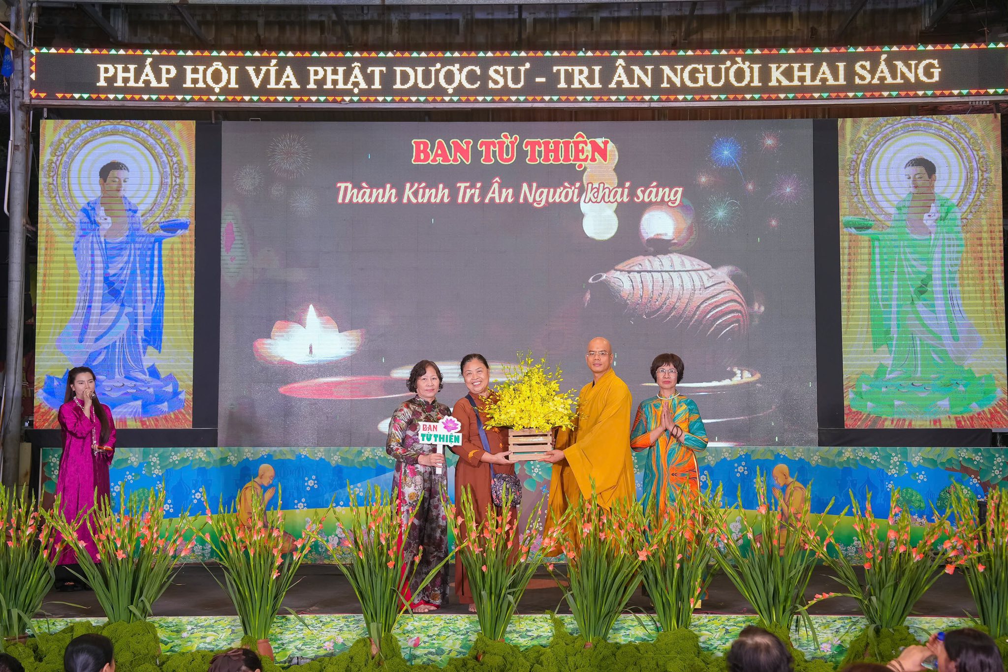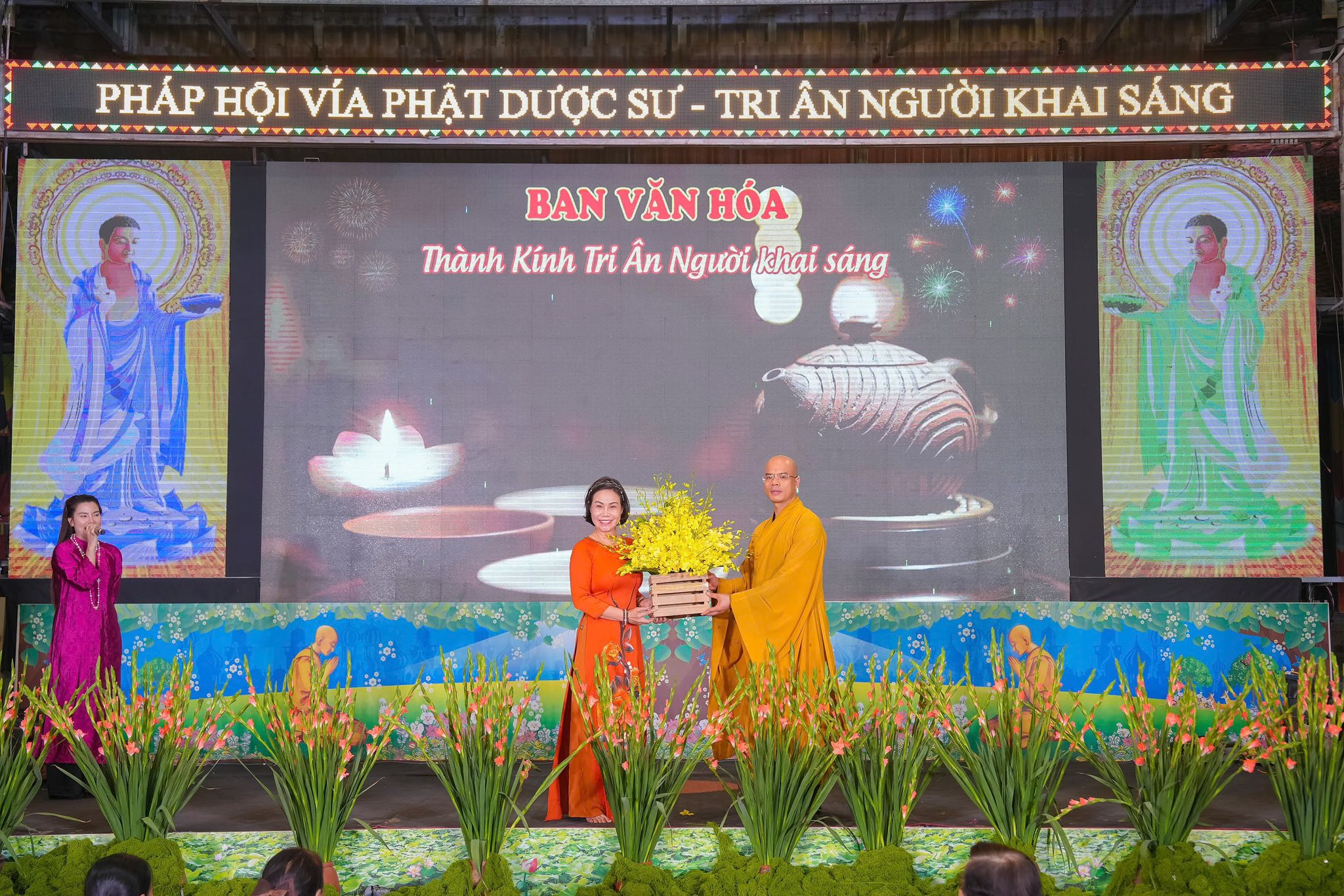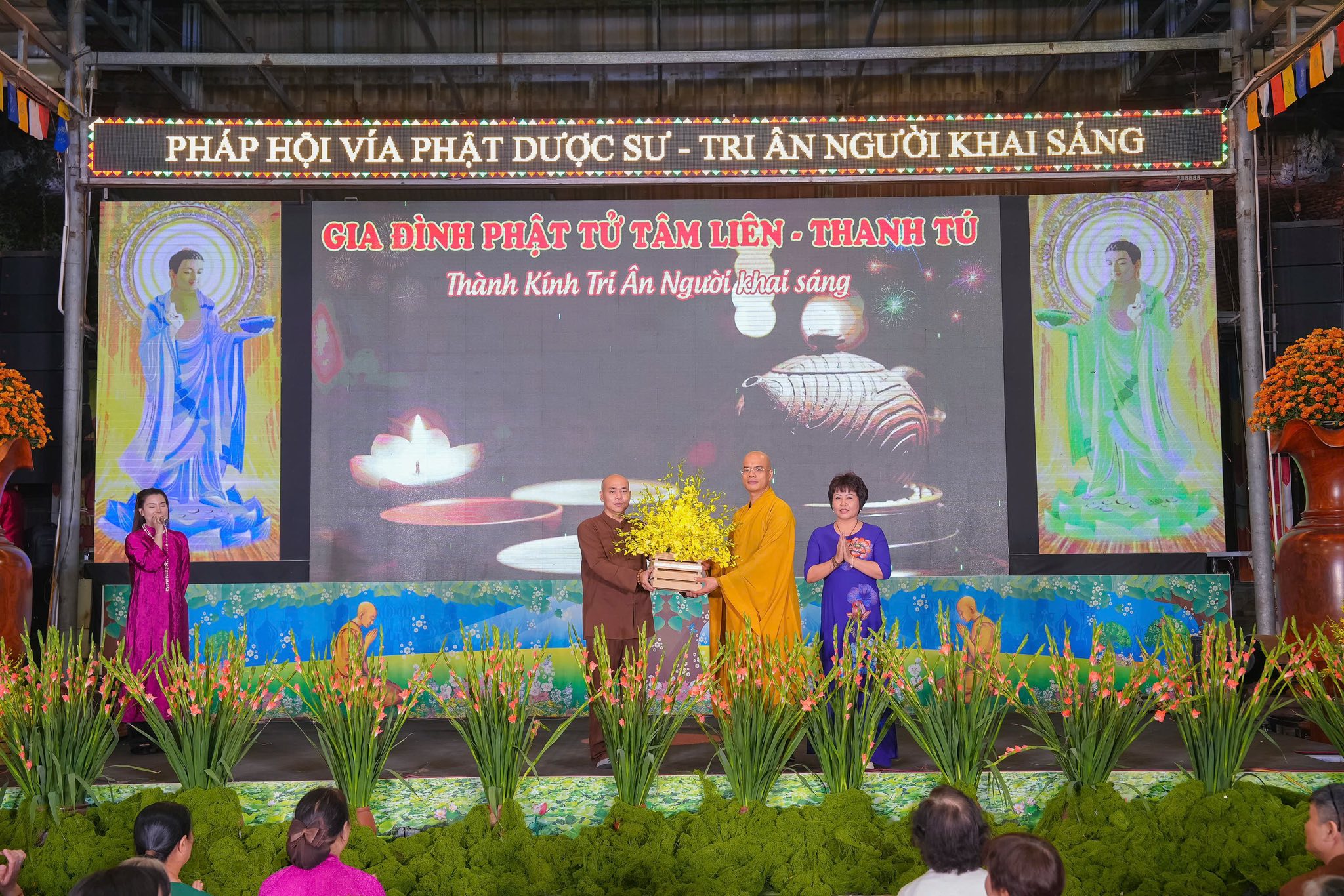 Phát biểu khai mạc buổi lễ, Đại đức Thích Quảng Hiếu đã cho toàn thể đại chúng biết về ý nghĩa, tên gọi của Đức Phật Dược Sư, cũng như ý nghĩa của ngày Nhà giáo Việt Nam 20/11. Theo đó, Đức Phật Dược Sư còn có tên gọi là Dược Sư Lưu Ly Quang Vương Phật, là biểu tượng cho y học và chữa lành. Ngài là Giáo chủ thế giới Tịnh Lưu Ly ở phương Đông, với đại nguyện cứu khổ, tiêu trừ bệnh tật và tai ương của chúng sinh. Việc thờ phụng và trì niệm danh hiệu Ngài giúp tiêu trừ bệnh khổ về thân và tâm, tăng phúc, tăng thọ, tiêu trừ tai nạn trong đời này, tịnh hòa nghiệp bất thiện từ quá khứ, mở rộng lòng từ bi, rũ bỏ tham – sân – si và thanh tịnh hóa nghiệp chướng. Trong quá trình tu hành Bồ tát đạo, Ngài đã phát ra 12 đại nguyện để cứu độ chúng sinh thoát khỏi khổ đau, bệnh tật và đạt đến sự giác ngộ. 12 đại nguyện này thể hiện lòng từ bi và trí tuệ vô lượng, giúp hành giả nương theo để thanh lọc thân tâm và sống một đời an lạc, hạnh phúc.