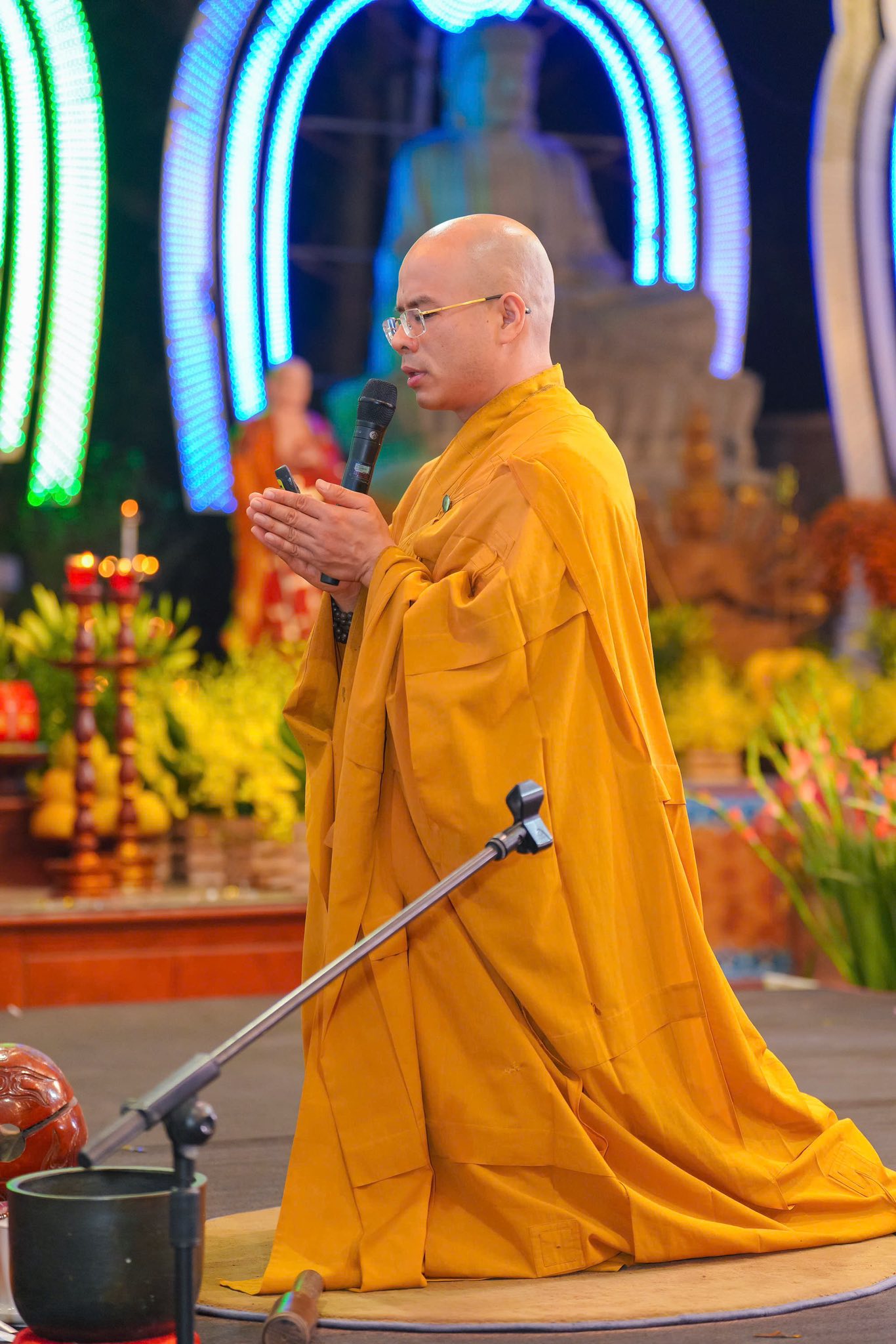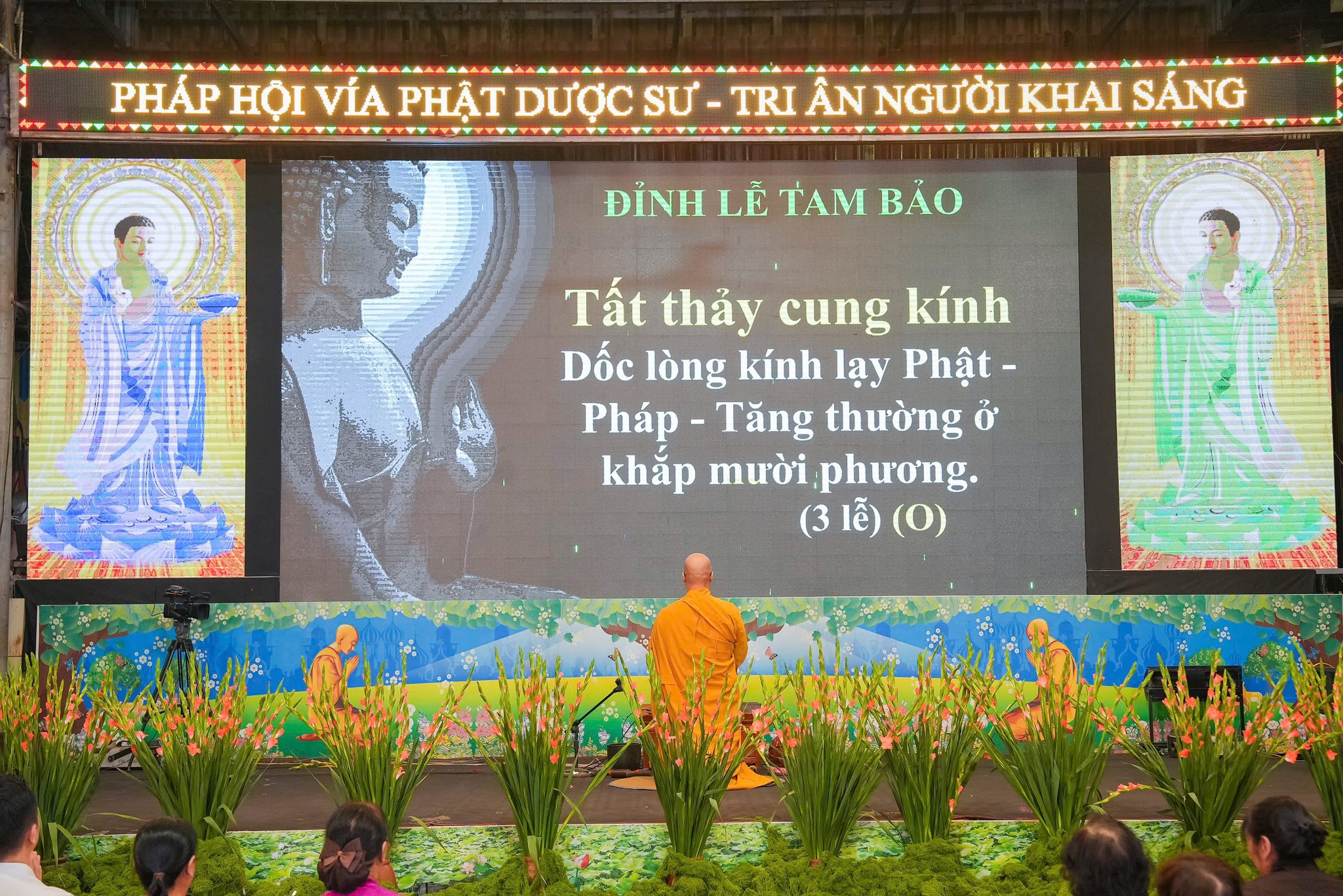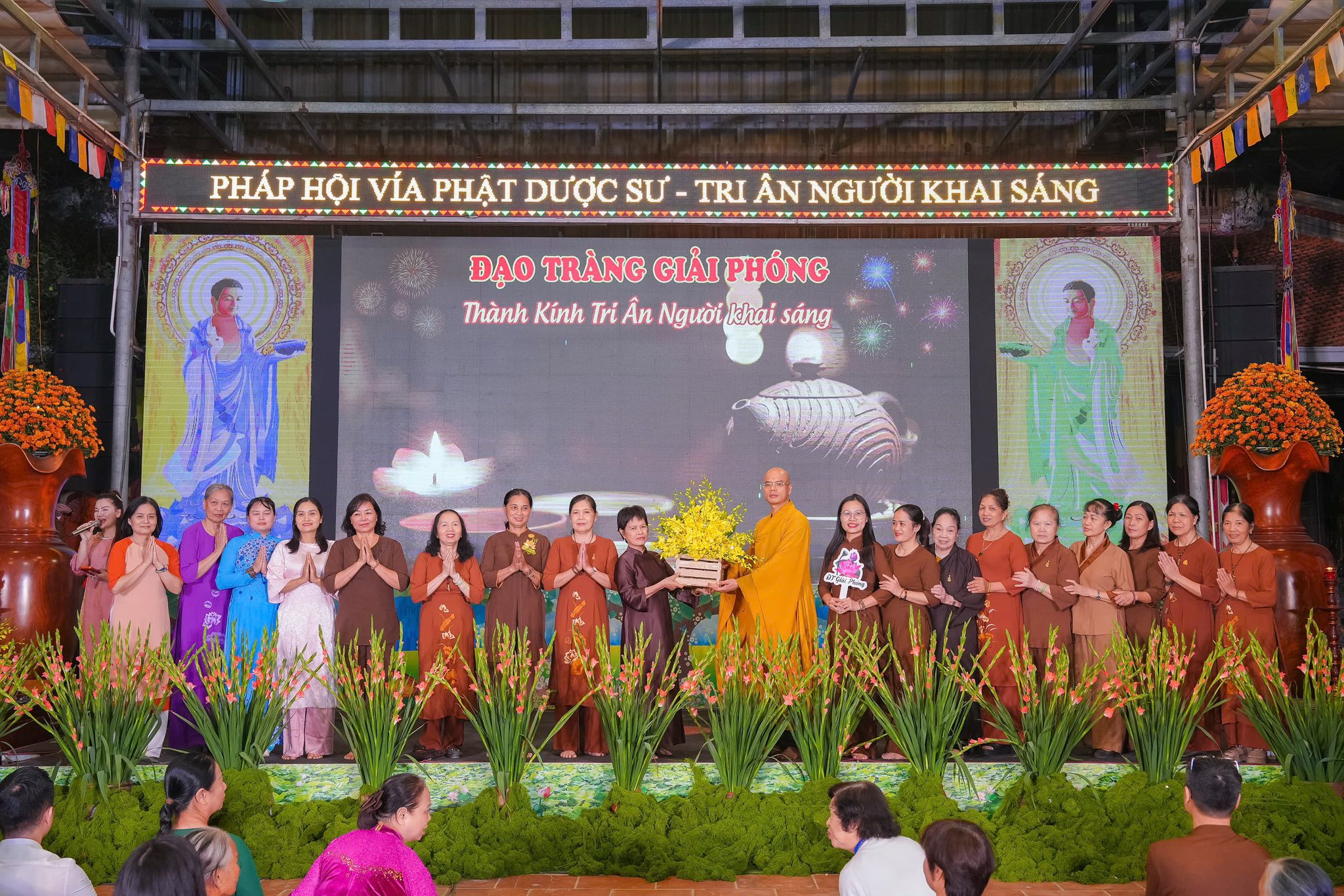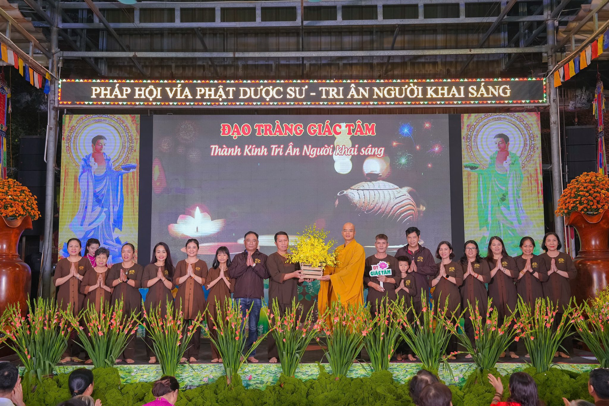 Phát biểu khai mạc buổi lễ, Đại đức Thích Quảng Hiếu đã cho toàn thể đại chúng biết về ý nghĩa, tên gọi của Đức Phật Dược Sư, cũng như ý nghĩa của ngày Nhà giáo Việt Nam 20/11. Theo đó, Đức Phật Dược Sư còn có tên gọi là Dược Sư Lưu Ly Quang Vương Phật, là biểu tượng cho y học và chữa lành. Ngài là Giáo chủ thế giới Tịnh Lưu Ly ở phương Đông, với đại nguyện cứu khổ, tiêu trừ bệnh tật và tai ương của chúng sinh. Việc thờ phụng và trì niệm danh hiệu Ngài giúp tiêu trừ bệnh khổ về thân và tâm, tăng phúc, tăng thọ, tiêu trừ tai nạn trong đời này, tịnh hòa nghiệp bất thiện từ quá khứ, mở rộng lòng từ bi, rũ bỏ tham – sân – si và thanh tịnh hóa nghiệp chướng. Trong quá trình tu hành Bồ tát đạo, Ngài đã phát ra 12 đại nguyện để cứu độ chúng sinh thoát khỏi khổ đau, bệnh tật và đạt đến sự giác ngộ. 12 đại nguyện này thể hiện lòng từ bi và trí tuệ vô lượng, giúp hành giả nương theo để thanh lọc thân tâm và sống một đời an lạc, hạnh phúc.