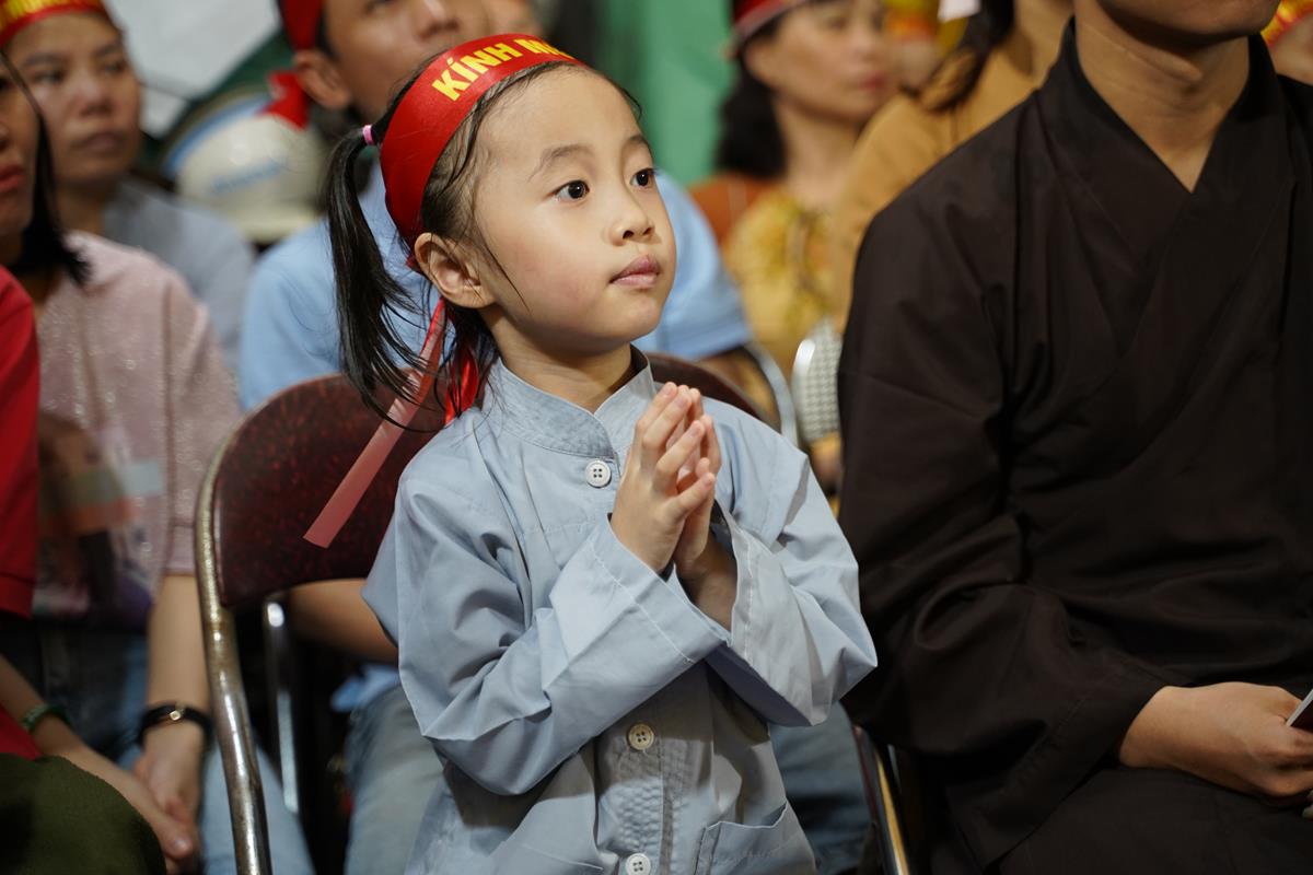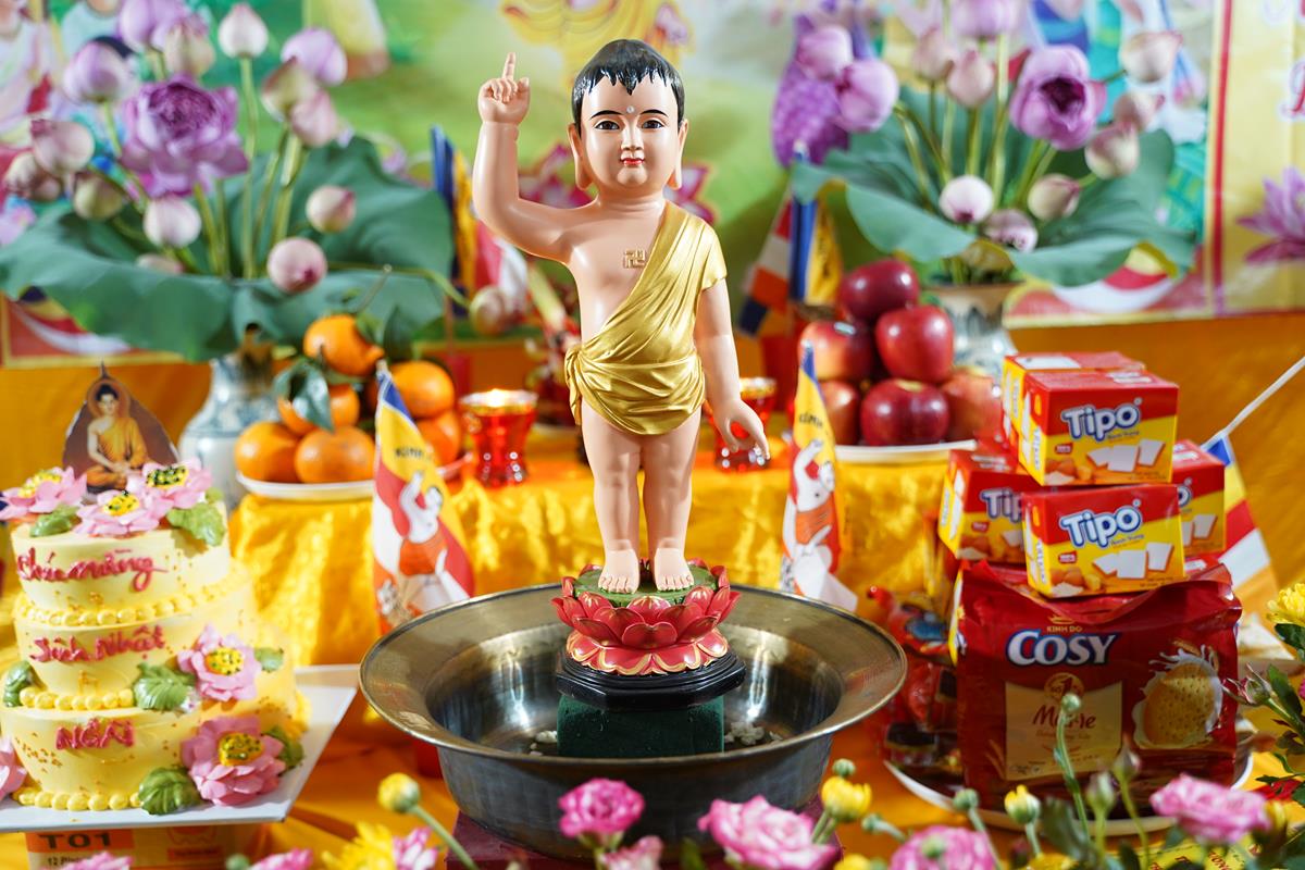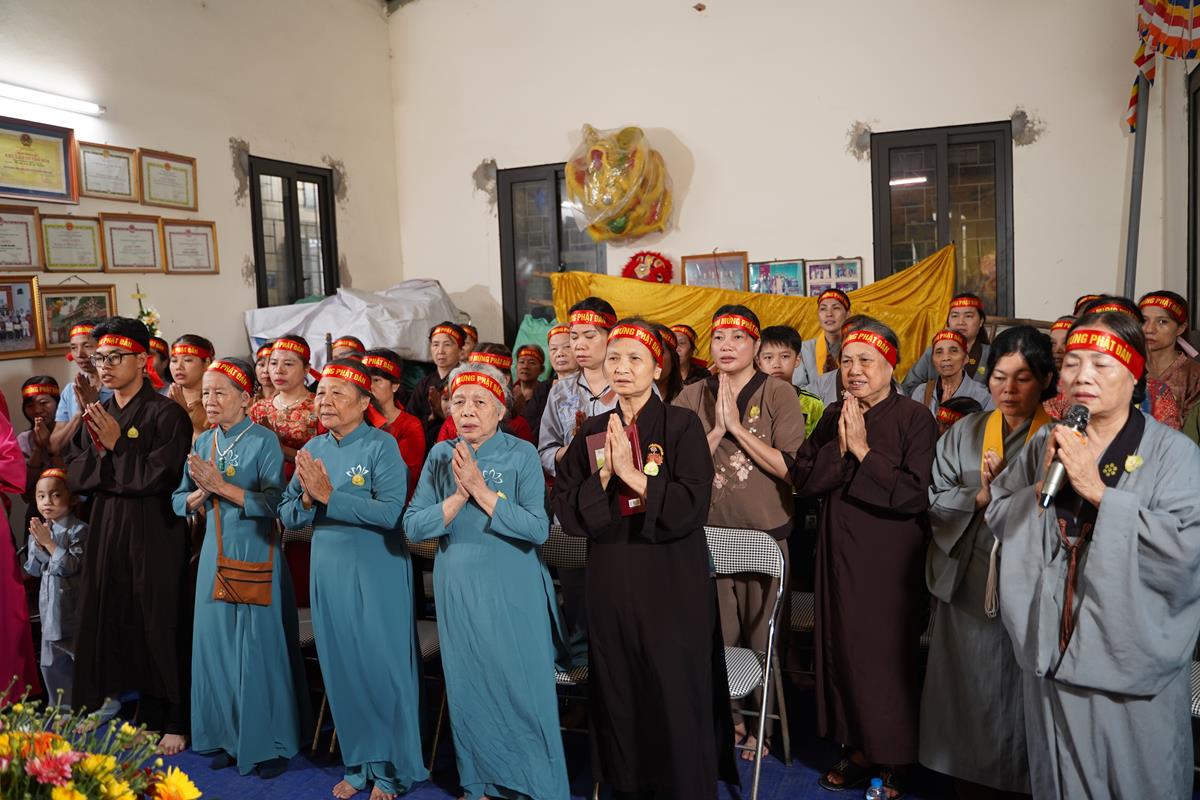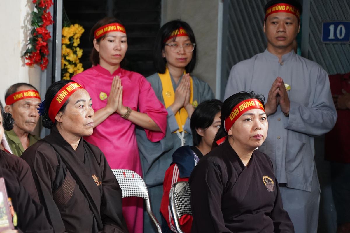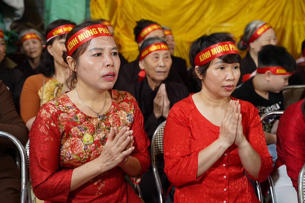 Sau đó, dưới sự hướng dẫn của Phật tử Đạo tràng, toàn thể nhân dân đã cùng nhất tâm hướng về tôn tượng Đức Phật sơ sinh, trì tụng kinh Chuyển Pháp Luân và thực hiện nghi thức Mộc Dục theo truyền thống. Toàn thể nhân dân cùng nhau nô nức, hoan hỷ xếp hàng chờ Tắm Phật trong niềm an lạc và thanh tịnh.
