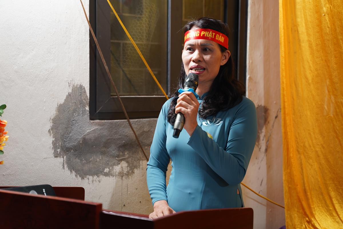 Tại đây, Phật tử Hoa Đức Hạnh – Chúng Phó Đạo tràng Pháp Hoa chùa Bằng đã chia sẻ với đại chúng về ý nghĩa của Lễ Tắm Phật, đồng thời nhắc lại lời của đức Đệ Tứ Pháp Chủ – Tôn Sư của đạo Tràng Pháp Hoa đã nhấn mạnh trong bức Thông điệp Đại lễ Phật đản PL.2568 –DL.2024 “Mùa Phật Đản đã về, mùa của yêu thương và hiểu biết, những người con Phật chúng ta hãy tinh tấn thực hành những lời dạy vàng ngọc của Đức Phật, tịnh hóa tâm thức, chuyển hóa tam độc tham sân si thành tam vô lậu học giới định tuệ, kiến tạo chính báo trang nghiêm thanh tịnh để hình thành y báo hòa bình an lạc”.