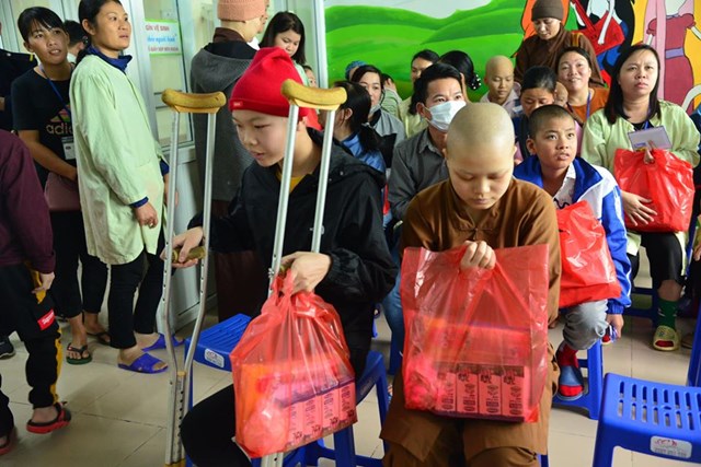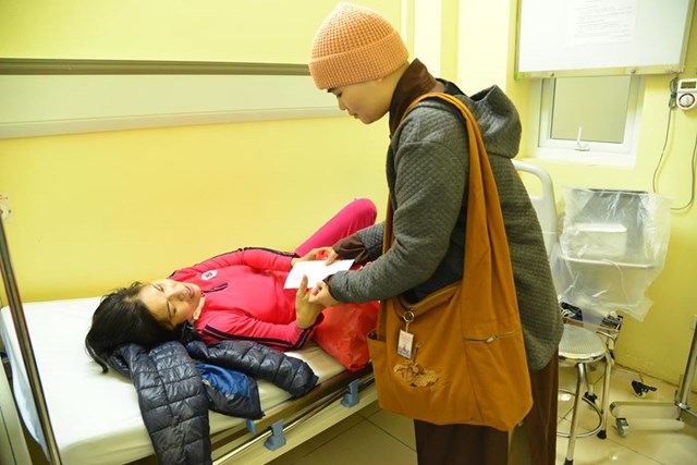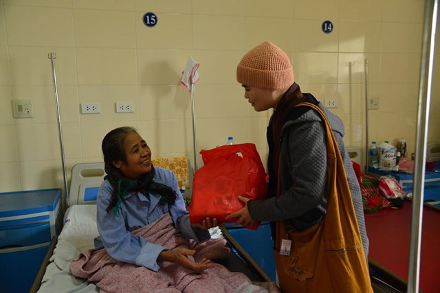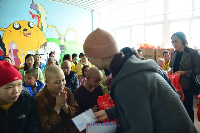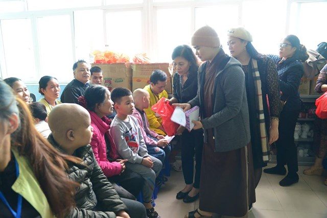 Tại đây, đoàn cũng đã động viên thăm hỏi các bệnh nhân, khuyên các bệnh nhân tinh tấn niệm Phật, sống cuộc sống lạc quan yêu đời, suy nghĩ tích cực để đẩy lùi bệnh tật, yên tâm điều trị, sớm vượt qua được căn bệnh hiểm nghèo để trở về đoàn tụ, ăn tết cổ truyền cùng gia đình.