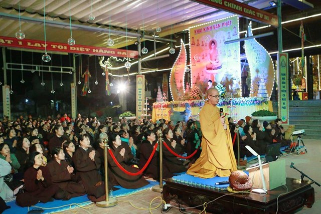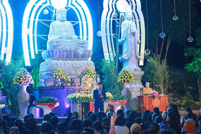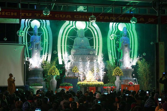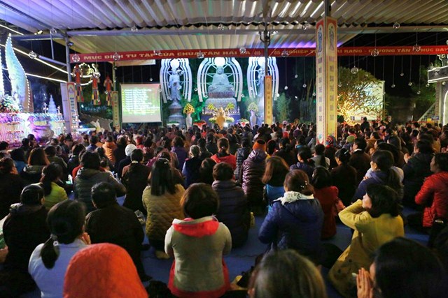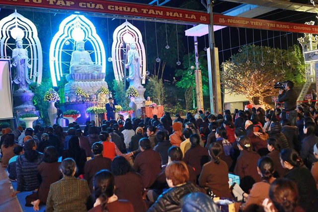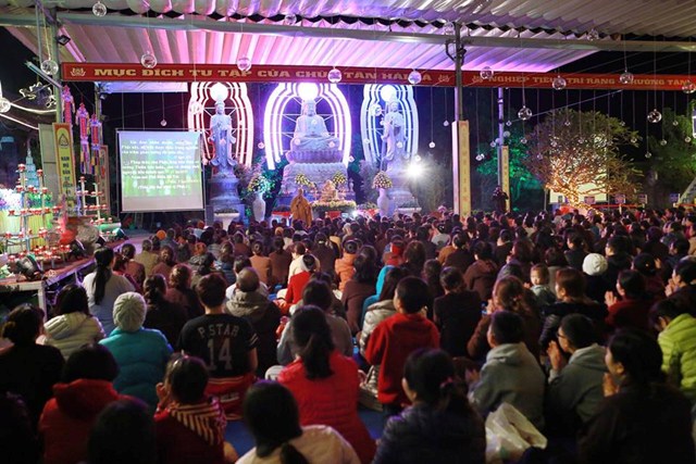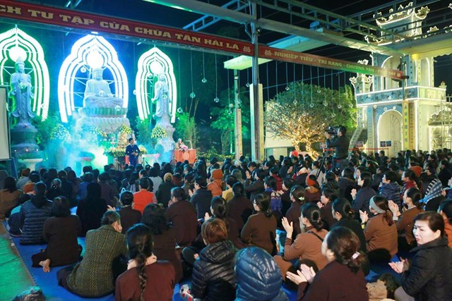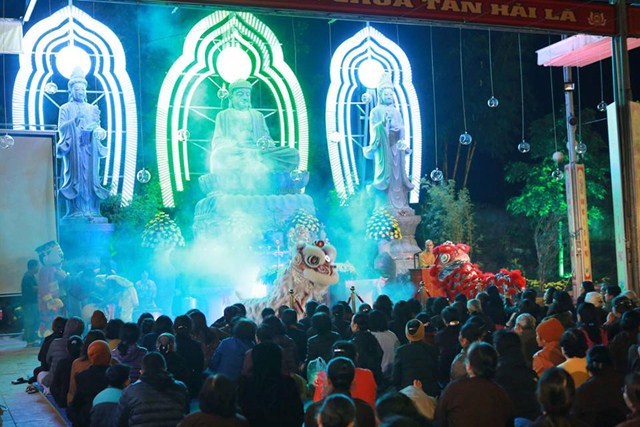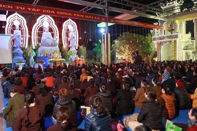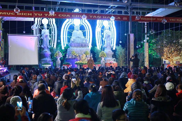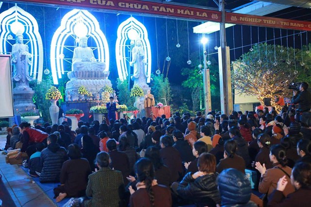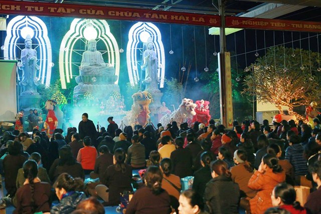 Trong khi hàng triệu triệu người đang nô nức đổ ra đường, đổ về các nhà thờ để đón mừng ngày lễ Noel, ngày lễ trọng đại của những con chiên đi theo Thiên Chúa giáo, trong đó có cả các Phật tử thì tại chùa Tân Hải, làng Phương  Ngoại, xã Trung Châu, huyện Đan Phượng, thành phố Hà Nội đã có hàng ngàn Phật tử vân tập về chốn Già Lam để đón xem chương trình văn nghệ, sinh hoạt Phật giáo với các ca khúc ca ngợi công hạnh của Chư Phật và Bồ Tát. Đồng thời đối trước Phật điện Tây Phương tam thánh chùa Tân Hải để tham dự khóa lễ Vạn Phật hay còn gọi là kinh Phật thuyết Phật danh, lễ lạy 11,100 vị Phật, do Đại đức Thích Quảng Hiếu – Trưởng BTC khóa lễ làm chủ sám.