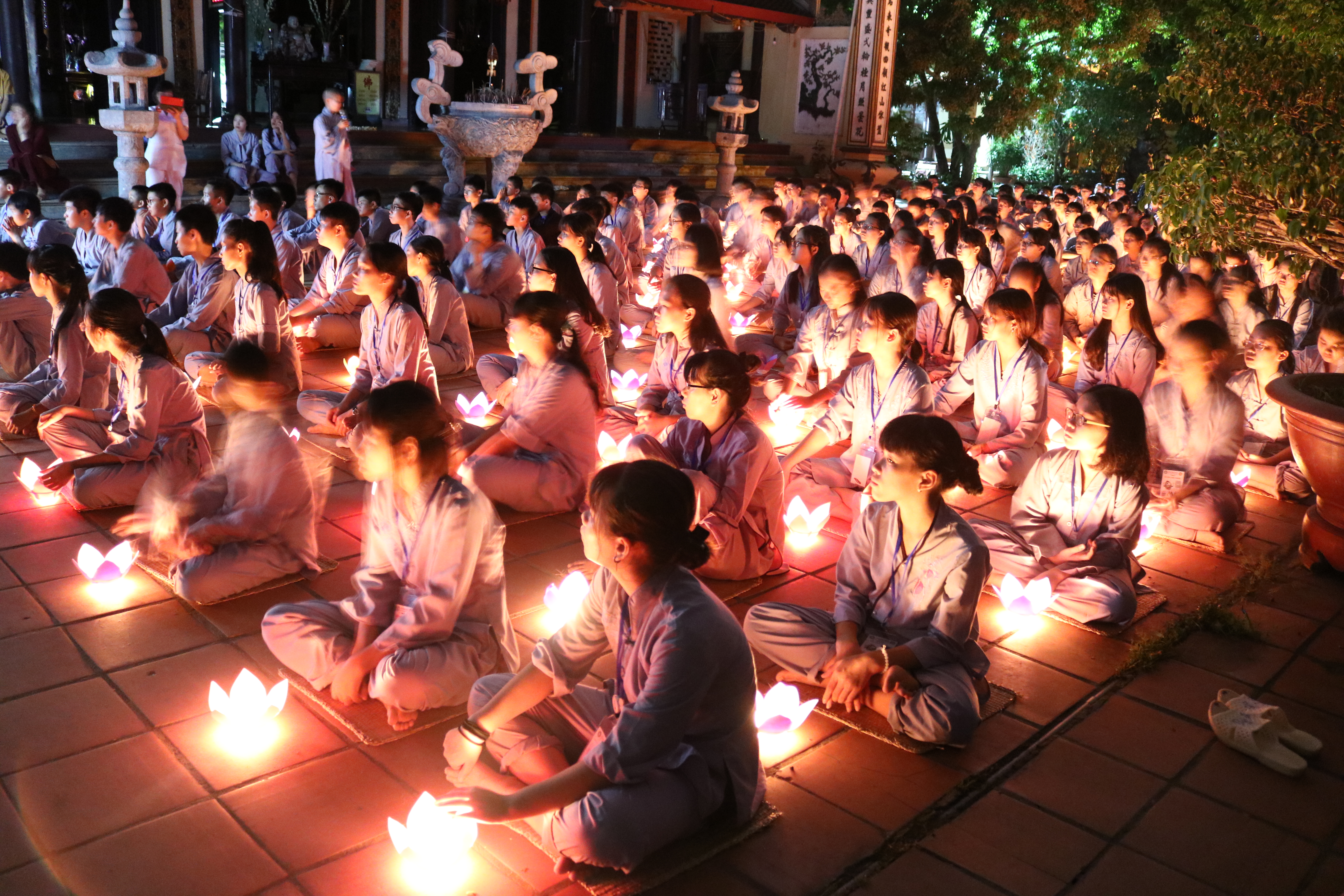 Kết thúc một ngày tu học, các bạn thiền sinh được thắp nến tri ấn, vô cùng xúc động với những lời chia sẻ, lời sám hối rất chân tình của các em gửi tới cha mẹ.