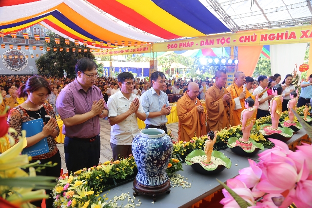 Cuối buổi lễ, Chư tôn đức Tăng Ni, các vị khách quý cùng nhân dân, Phật tử đã thực hiện nghi thức dâng hương, niệm Phật, cử hành nghi lễ tắm Phật, cầu nguyện quốc thái dân an, cầu cho thế giới hòa bình, đất nước thịnh vượng.