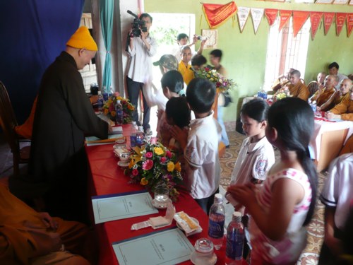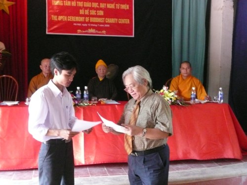 Nhân dịp này, HT Thích Thanh Tứ đã tiên phong ủng hộ 3 triệu đồng để Trung tâm làm từ thiện. Theo gương Cụ, nhiều tổ chức, đoàn thể, công ty, tự viện và cá nhân có mặt đã phát tâm ủng hộ tịnh tài, vật dụng.