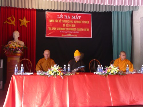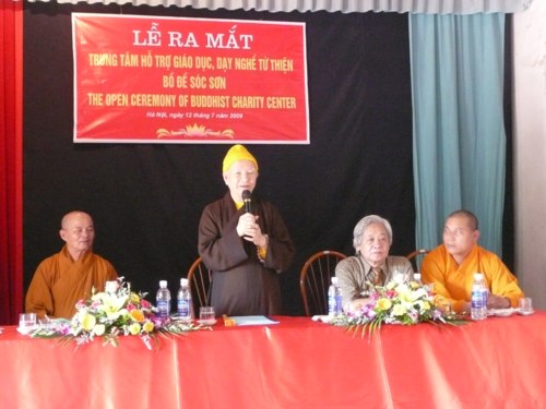 Sau các phát biểu của các cấp chính quyền, HT Thích Thanh Tứ đã ban đạo từ tán thán công đức, căn dặn, sách tiến tập thể cán bộ, nhân viên Trung tâm. Cụ nói: Việc ra đời Trung tâm từ thiện Bồ Đề Sóc Sơn với các nhân sự là Phật tử đến từ nhiều địa bàn và đường hướng phát triển theo tinh thần Phật giáo là một sự kết hợp tốt giữa Đạo và đời, giữa yếu tố xã hội và yếu tố Phật giáo, từ bi, hỷ xả rộng rãi. Thương xót và chia xẻ với những thân phận thiệt thòi, “thương người như thể thương thân”, “lá lành đùm lá rách” là truyền thống của dân tộc, cũng là căn bản của tinh thần Phật giáo nhập thế, là điều Tăng Ni Phật tử nên làm và cần làm, GHPGVN khuyến khích và mong muốn thúc đẩy điều đó.