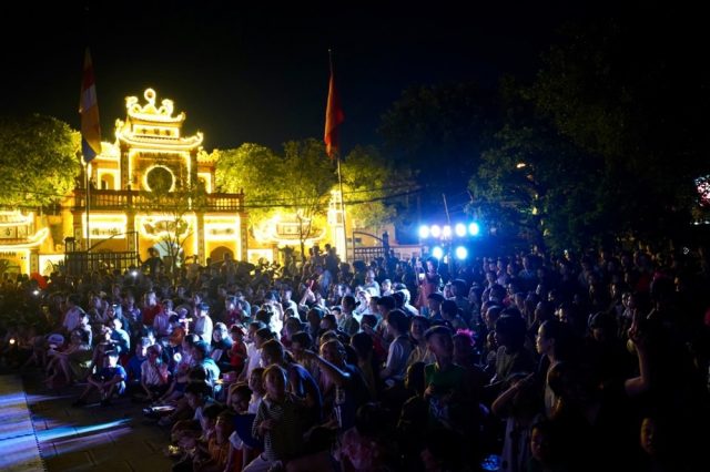 Tại sân chùa Duệ Tú, không khí Trung thu truyền thống được tái hiện một cách sống động. Các em nhỏ không chỉ được hòa mình vào không gian rực rỡ sắc màu mà còn được thưởng thức các tiết mục văn nghệ đặc sắc mang đậm bản sắc dân gian.