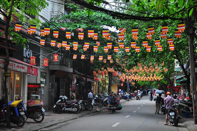 Trên địa bàn thành phố Hà Nội, ngay từ ngày mùng 01/04, các chùa đều đã trang trí đèn, cờ hoa, băng rôn “Kính mừng Phật Đản” bừng sáng khắp các con phố, nẻo đường. Không khí Phật Đản tươi vui đang tràn ngập trong lòng từng người dân thủ đô.
