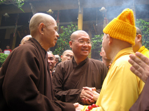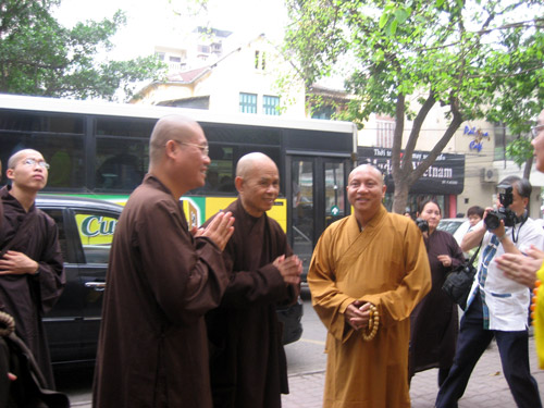 Hòa thượng Thích Thanh Tứ, Phó Chủ tịch thường trực Hội đồng Trị sự Trung ương GHPGVN, trụ trì chùa Quán Sứ tiếp Hòa thượng Thích Nhất Hạnh