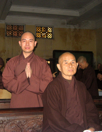 Đại đức Tiến sĩ Thích Đức Thiện bên Hòa thượng Nhất Hạnh tại khu Đại giảng đường