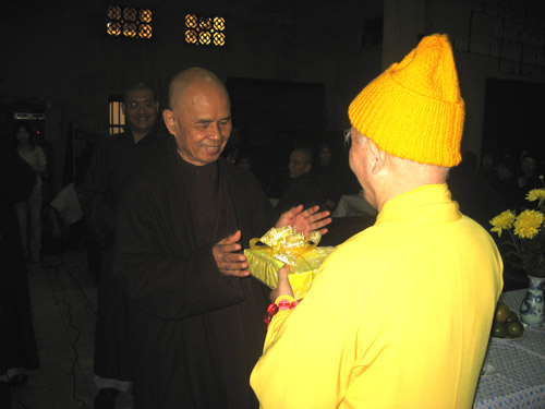 Hòa thượng Thích Thanh Tứ tặng quà lưu niệm Hòa thượng Thích Nhất Hạnh
