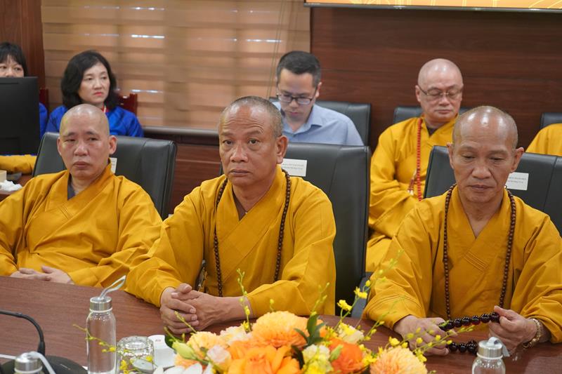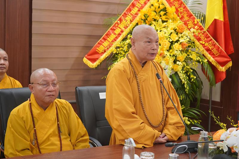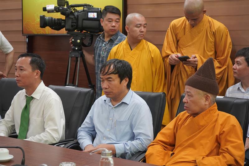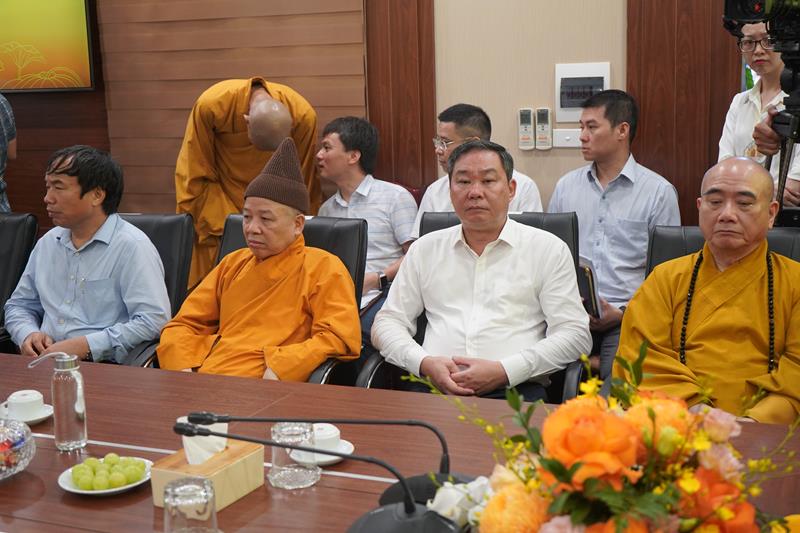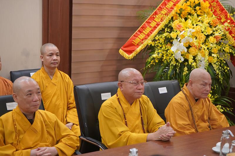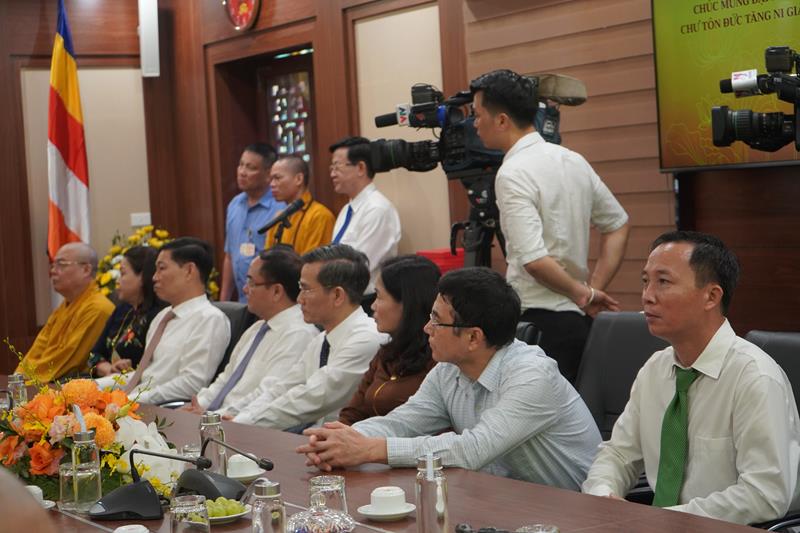 Đón tiếp phái đoàn có HT.Thích Thanh Dũng – Phó Pháp chủ kiêm Chánh Thư ký Hội đồng Chứng minh Giáo hội Phật giáo Việt Nam; HT.Thích Thiện Nhơn – Chủ tịch Hội đồng trị sự Giáo hội Phật giáo Việt Nam, HT. Thích Thanh Nhiễu -Phó Chủ tịch Thường trực HĐTS GHPGVN; HT. Thích Gia Quang, Phó Chủ tịch HĐTS, Trưởng ban TTTT TƯGHPGVN; HT. Thích Bảo Nghiêm – Phó Chủ tịch HĐTS, Trưởng ban Hoằng pháp TƯGHPGVN; HT. Thích Quảng Tùng, Phó Chủ tịch HĐTS, Trưởng ban Từ thiện xã hội TƯGHPGVN; HT. Thích Thanh Điện-Phó Chủ tịch HĐTS GHPGVN; HT. Thích Quảng Hà – Phó Chủ tịch HĐTS GHPGVN; HT. Thích Thanh Quyết, Phó Chủ tịch HĐTS Trưởng ban Giáo dục Phật giáo TƯGHPGVN; TT. Thích Đức Thiện, Phó Chủ tịch kiêm tổng thư ký HĐTS GHPGVN; TT. Thích Thanh Tuấn, Phó Tổng Thư ký, Chánh VP Trung ương cùng Chư Tôn đức Lãnh đạo các Ban, Viện Trung ương; Chư tôn đức Lãnh đạo BTSPG các tỉnh, thành phố .