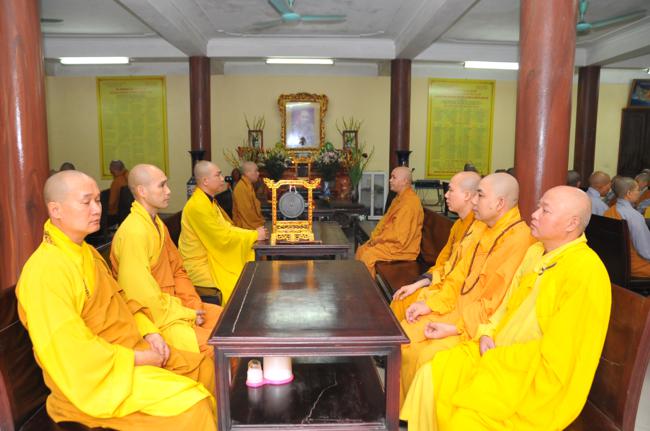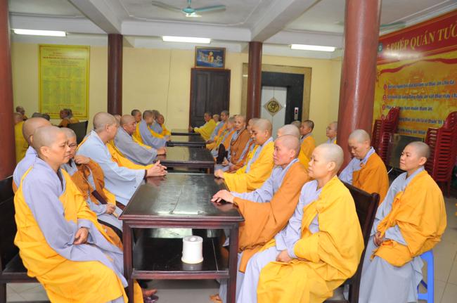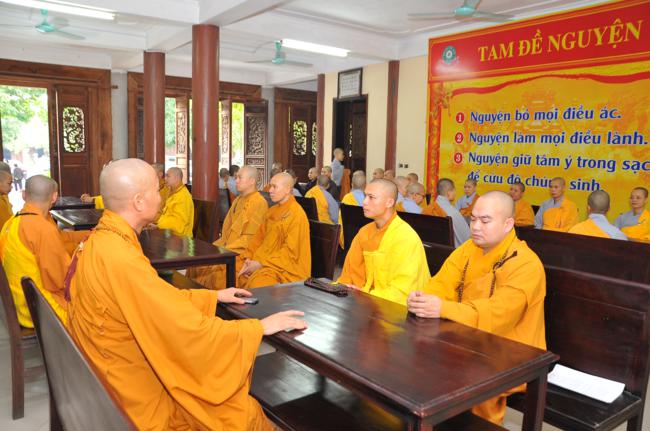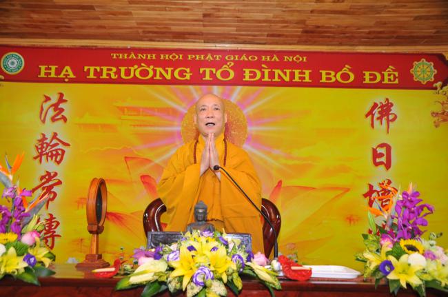 Đồng thời, Hòa thượng chia sẻ nguồn gốc pháp hạ an cư từ thời Phật còn tại thế: “Đức Bản Sư Thích Ca Mâu Ni sau khi thành đạo dưới cội Bồ Đề, Ngài đã kết túc an cư ngay năm đó. Và cứ như vậy, trong suốt 45 năm trụ thế thuyết pháp của Đức Phật, cũng là 45 mùa kết hạ an cư từ thành Vương Xá cho tới các vùng lân cận. Năm hạ thứ 7, Ngài lên cung trời Đao Lợi an cư để thuyết pháp cho thánh mẫu Ma Gia và chư thiên nghe. Pháp hạ an cư được Lịch đại Tổ sư truyền trì. Dù cho Nam truyền hay Bắc truyền thì Luật tạng về pháp hạ an cư vẫn được xiển dương và duy trì cho tới ngày nay. Ba tháng an cư nương vào giới luật để chư Tăng Ni tu tam vô lậu học, nghiêm thân tiến đạo. Ba tháng an cư còn gọi là “vũ kỳ an cư” hay “kết hạ an cư” hoặc “cửu tuần cấm túc an cư“.