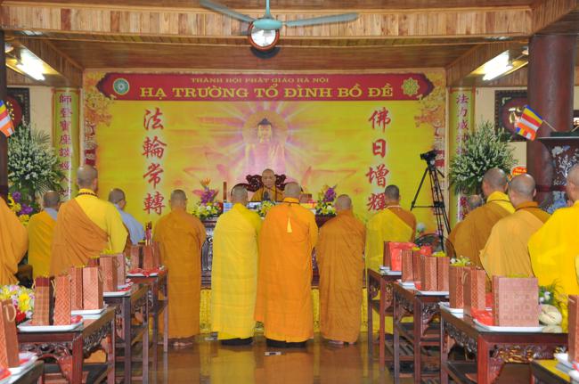 Tại buổi lễ, Hòa thượng Thích Bảo Nghiêm đã tán thán công đức của Phật tử thập phương đã cúng dàng phẩm vật nhân ngày tự tứ “Hôm nay, ba tháng hạ an cư đã được thành tựu. Chư Tăng vừa rồi đã làm lễ tự tứ, 137 vị Tăng Ni trường hạ Tổ đình Bồ Đề thuộc 18 trường hạ của Phật giáo thành phố Hà Nội, dưới sự chỉ đạo của TW Giáo hội và trực tiếp của GHPGVN thành phố Hà Nội, chư Tăng Ni đã kết túc tiền an cư 3 tháng từ 16/4 đến 16/7 âm lịch. Hôm nay 14/7 âm lịch, chư Tăng làm lễ tự tứ, và giờ này đã nhất tâm tự tứ xong. Hôm nay, kính mừng ngày chư Tăng thêm 1 tuổi hạ, Đức Phật dạy người xuất gia lấy tuổi hạ làm quan trọng hơn tuổi đời. Tuổi đời đánh dấu năm tháng trôi qua của cuộc đời, nhưng tuổi hạ đánh dấu sự tu tập, tiến tu đạo nghiệp bằng phúc và tuệ. Chư Tăng sau 3 tháng nghiêm trì giới luật kết túc an cư đã xứng đáng vinh dự được đón nhận một tuổi hạ. Trong hiến chương GHPGVN cũng nương theo Tỳ Ni luật tạng để làm lễ tấn phong hàng giáo phẩm Thượng tọa, Hòa thượng, Ni sư, Ni trưởng. Do đó, ngày chư Tăng mãn hạ là ngày vinh dự nhất, là ngày tăng trưởng công đức nhất của chư tăng. Các Phật tử đã theo lịch truyền thống của ông bà tổ tiên, hướng vào ngày Tăng tự tứ, trước nhất là kính mừng tăng tự tứ, sau là đỉnh lễ tăng lạp của chư tôn đức tăng ni. Năm nay, chúng tôi rất vui mừng bởi các chùa của các trụ xứ trong quận Long Biên, huyện Gia Lâm và một số chùa ở các vùng lân cận như chùa Bằng, chùa Lý Triều Quốc Sư, chùa Phúc Lâm…không phải thuộc địa phận quận Long Biên, huyện Gia Lâm – nơi mà chư tăng ni 2 đơn vị này an cư. Tuy nhiên, các vị đều đi về đây để cúng dàng. Từ sáng tới giờ, các vị rất thanh tịnh, trang nghiêm theo thứ tự vào và như pháp cúng dàng. Dù là tứ sự tức là y phục, thuốc thang, ẩm thực, giường tòa…các vị đã thành tâm mà dâng cúng. Đó chính là như pháp tứ sự cúng dàng”.