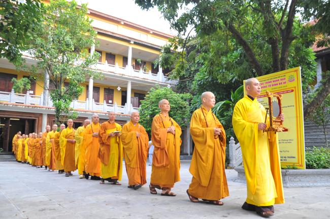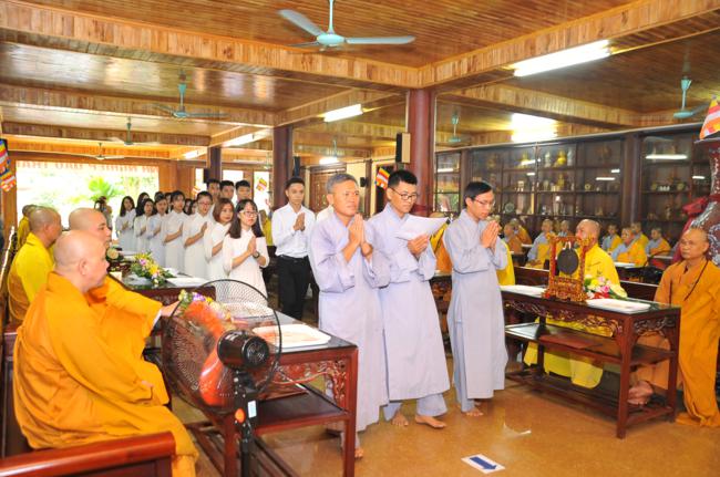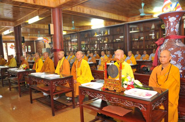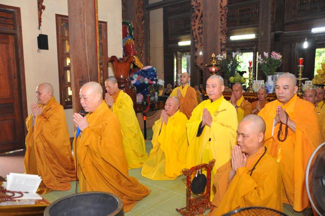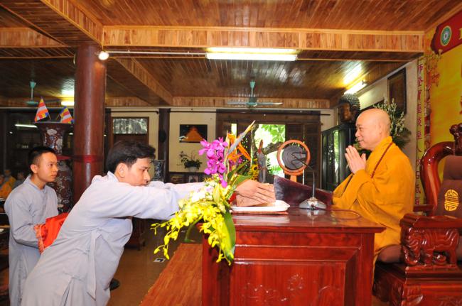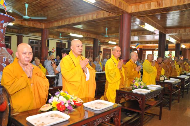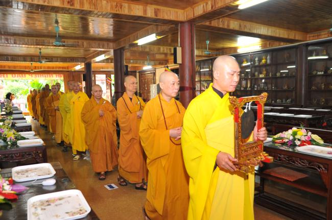 Buổi lễ được đặt dưới sự chủ trì của HT.Thích Bảo Nghiêm – Phó Chủ tịch HĐTS kiêm Trưởng ban Hoằng pháp TW GHPGVN – đương vi Thủ tọa hạ trường cùng chư tôn đức Thượng tọa, Đại đức, Ni trưởng, Ni sư trong Hạ trường, quý đạo hữu Phật tử các đạo tràng, Phật tử thập phương cùng về cúng dường Chư tôn đức.