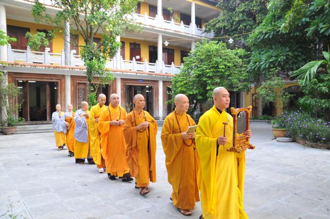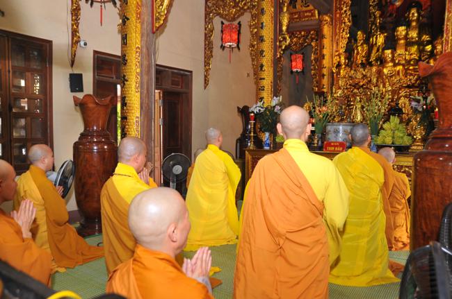 Trước đó, tối ngày 23/08/2018, chư Tăng Ni tại trường hạ đã họp phiên cuối cùng của trường hạ, thực hiện nghi thức tụng kinh Pháp Hoa thông tiêu.