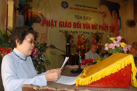 Tham luận: “Quan điểm của Phật giáo về Phụ nữ” của bà Vũ Thị Hòa khẳng định: “Sự hiện diện của phụ nữ trong các cộng đồng Phật Giáo khắp thế giới rất nổi bật, phụ nữ không chỉ tham gia với tư cách là những tín đồ hay thí chủ mà còn là các tu sĩ và thầy dạỵ. Họ là những nhà chính trị, nhà doanh nghiệp, nhà khoa học, nhà văn nhà báo… nổi tiếng.