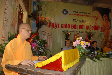 Tại buổi hội thảo, TT. Thích Thanh Hưng đã ban đạo từ, chúc mừng các nữ Phật tử nhân ngày 20/10, tán thán nỗ lực nghiên cứu kinh sách của các nữ Phật tử. Ngài khẳng định "Giáo lý nhà Phật rất bình đẳng nam nữ trong tu tập và giải thoát “tận độ chúng sinh”, và trước khi nhập diệt, Đức Thích Ca đã phó chúc việc ngoại hộ Phật pháp cho các cư sĩ Phật tử. ngày nay vai trò hộ Pháp của cư sĩ là rất quan trọng, tứ chúng đồng tu là bản thể của tổ chức Phật giáo".