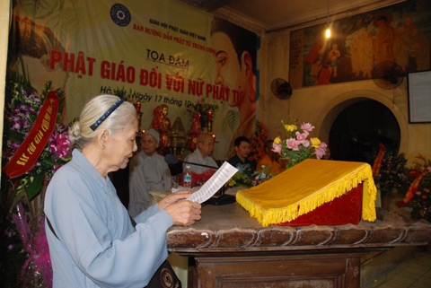 Tham luận “Vai trò người Phụ nữ trong Phật giáo” của Phật tử Nguyễn Thị Nga nêu rõ “Các tôn giáo khác không coi trọng người phụ nữ, nhất là về tài năng và trí tuệ; người phụ nữ không được đặt ngang hàng với nam giới. Với đạo Phật, bằng tình yêu và đức tin kiên cố, nhiều nữ Phật tử điển hình trong Phật giáo đã để lại danh tiếng cho đời sau, hiện nay rất nhiều nữ phật tử có công đức xây dựng trùng tu chùa chiền tự viện, tham gia công tác từ thiện, đóng góp nhiều tác phẩm nghệ thuật có giá trị trong kho tàng văn hóa Phật giáo.. giúp cho Phật pháp vững mạnh trường tồn”.