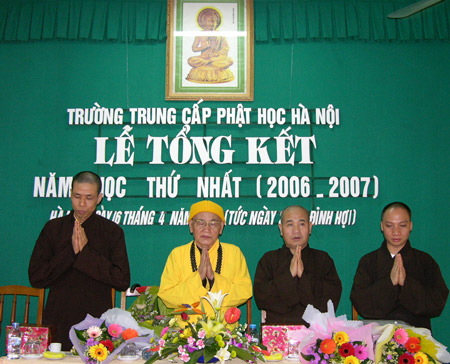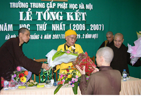 Tại buổi lễ, HT. Thích Thanh Chỉnh thay mặt Ban giám hiệu Trường ban đạo từ động viên  ban giảng sư và Tăng ni sinh nỗ lực phát huy những thành tích tốt đẹp, quyết tâm khắc phục những thiếu sót để bước sang những năm học tiếp theo thành tựu viên mãn. Nhân dịp này Hòa thượng trao giấy khen và quà tặng cho 5 vị (2 vị Tăng, 3 vị Ni) đạt kết quả học tập xuất sắc và 36 vị (14 vị tăng, 22 vị ni) đạt kết quả học tập loại giỏi. Được biết Trường trung cấp Phật học Hà Nội  có 102 Tăng Ni sinh, kết quả học tập đạt loại xuất sắc, giỏi và khá là 88%.