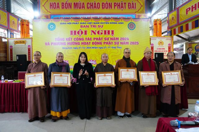 Nhân dịp này, UBND huyện Đông Anh đã có quyết định khen thưởng cho 40 Chùa đạt danh hiệu Chùa Tinh Tiến, và 25 vị Tăng Ni trong BTS GHPGVN huyện Đông Anh đã có nhiều hoạt động Phật sự ích đạo lợi đời trong thời gian qua.