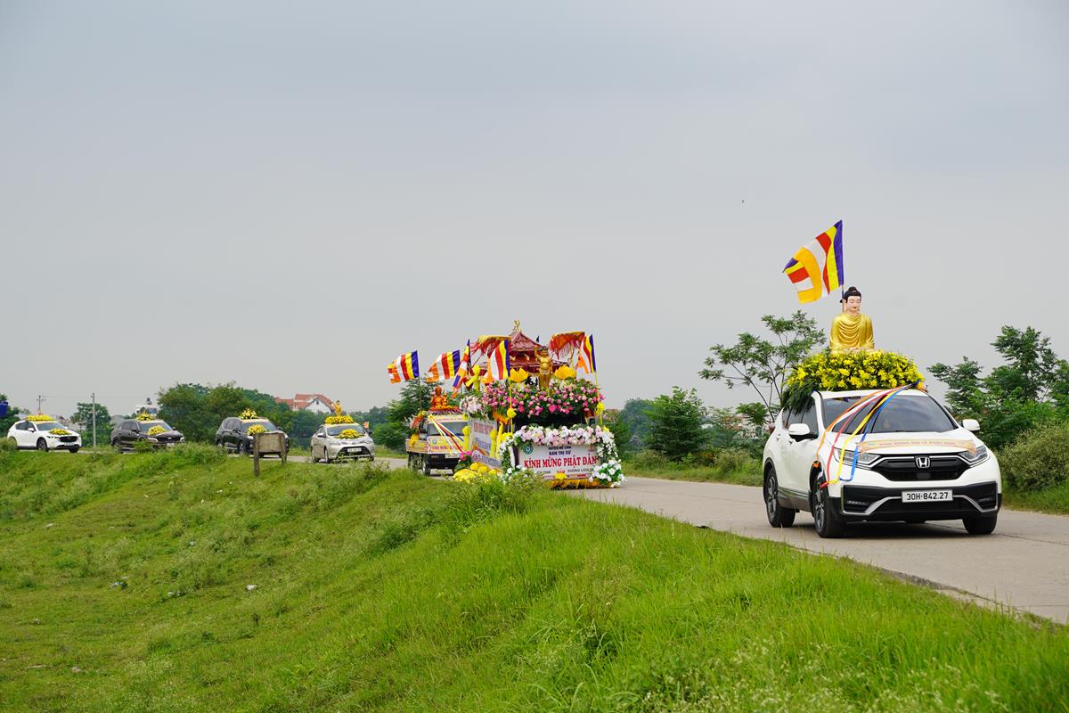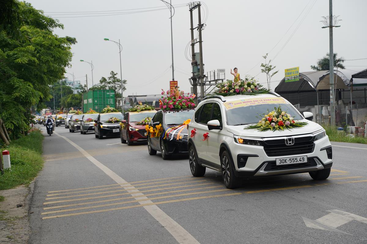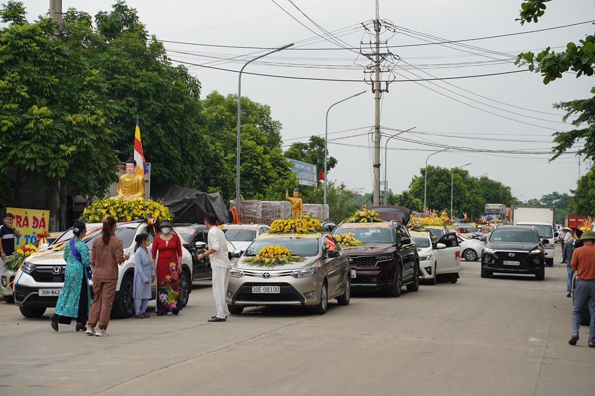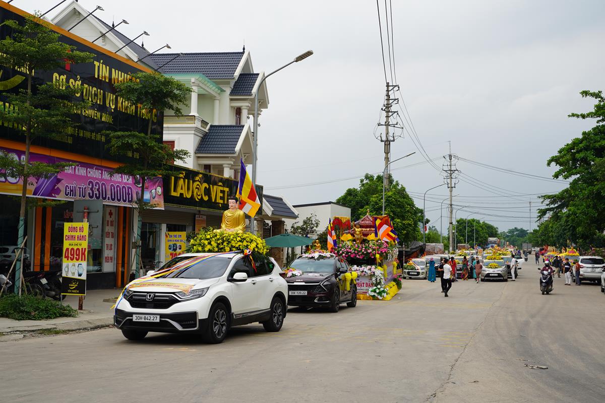 Theo đó, đoàn xe rước Phật di chuyển từ chùa Thường Lệ (xã Đại Thịnh, huyện Mê Linh, TP. Hà Nội) di chuyển qua các cung đường chợ hoa Mê Linh, Cổng đền Hai Bà Trưng, Đê Tráng Việt – Văn Khê – Hoàng Kim – Thạch Đà – Tiền Thịnh – Vạn Yên – Tự Lập – Tiến Thắng, đường 100, Ngã tư Nguyễn Văn Lôi,Tam Đồng, Thanh Tước, Thanh Lâm và về chùa Hương Vân (xã Thanh Lâm, huyện Mê Linh).