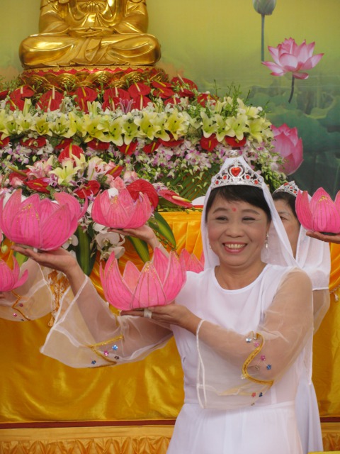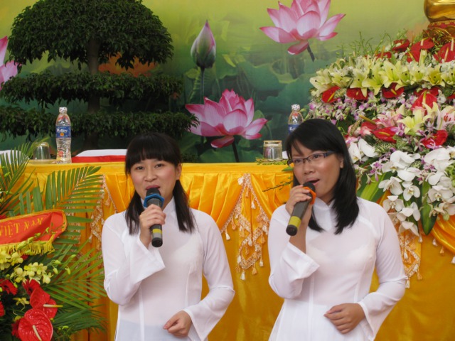 Sau một số tiết mục văn nghệ, buổi lễ chính thức diễn ra với phần chào Quốc kỳ, Đạo kỳ và niệm Phật cầu gia bị.