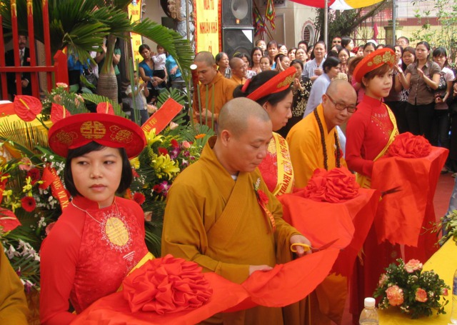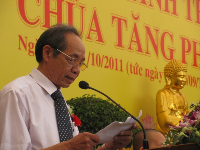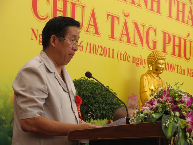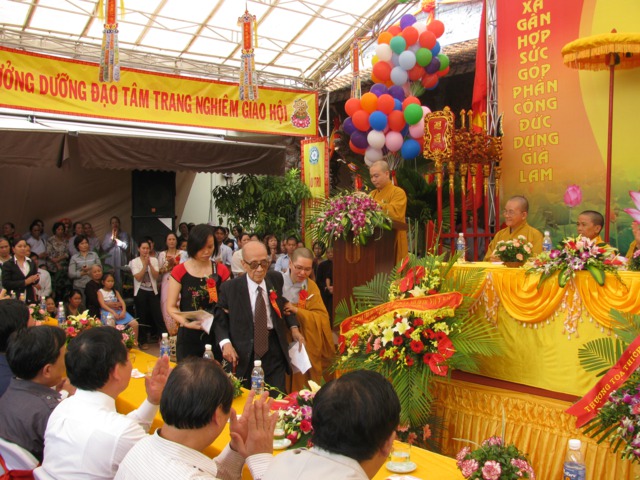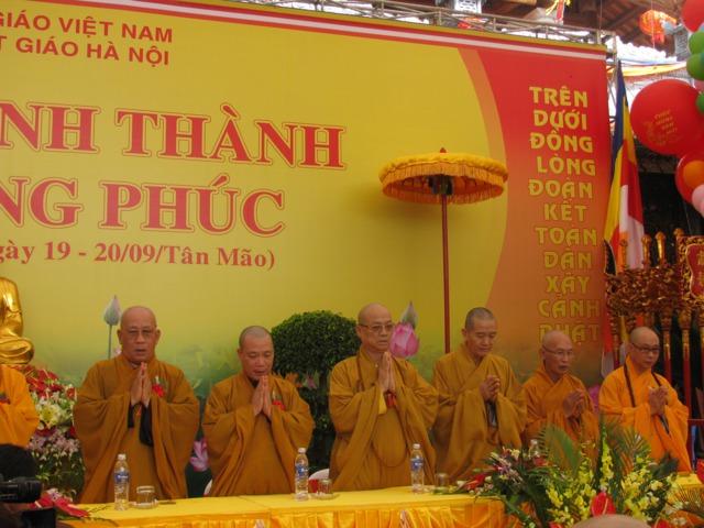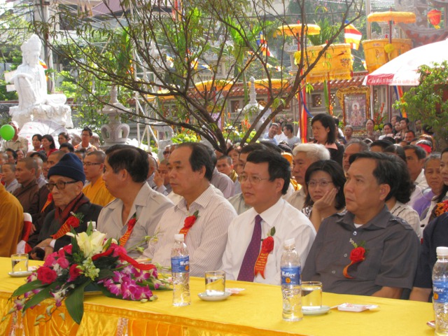 Về phía quan khách có Giáo sư, anh hùng lao động Vũ Khiêu, ông Hà Văn Núi – Phó Chủ tịch UBMTTQ Việt Nam, ông Bùi Hữu Dược – Vụ trưởng Vụ Phật giáo Ban Tôn giáo Chính phủ, đại diện chính quyền địa phương…