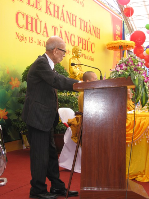Sau phát biểu của đại diện Mặt trận tổ quốc phường Thượng Thanh, Giáo sư Vũ Khiêu đã phát biểu về ý nghĩa chữ Tăng Phúc gắn với tên của ngôi chùa. Giáo sư cho rằng mọi người không chỉ nên cầu phúc cho riêng bản thân hay gia đình, mà còn cho nhân loại, có như vậy công đức và phúc đức mới tăng trưởng bền vững.