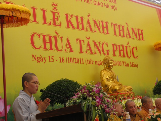 Kết thúc buổi lễ, sư cô Thích Đồng Hòa – trụ trì chùa đã phát biểu cảm tạ.