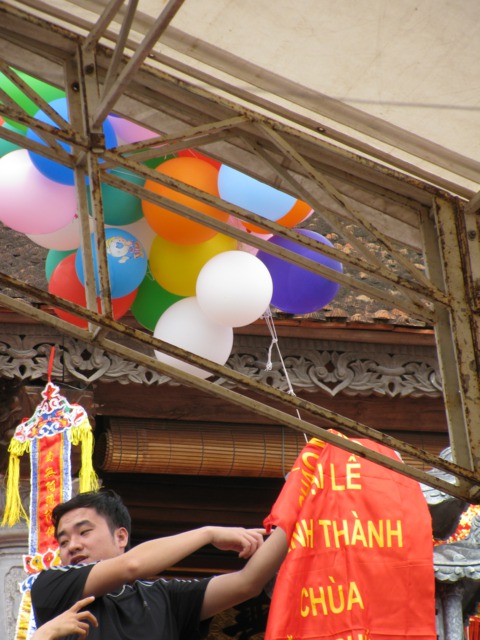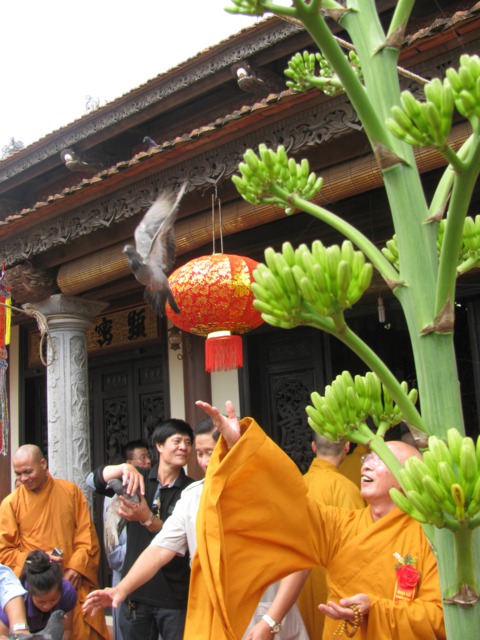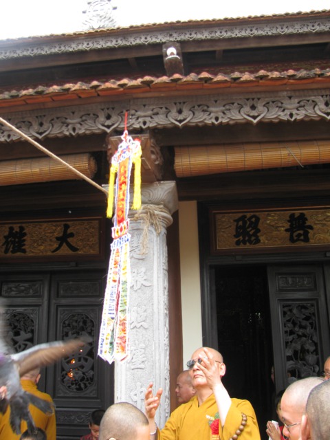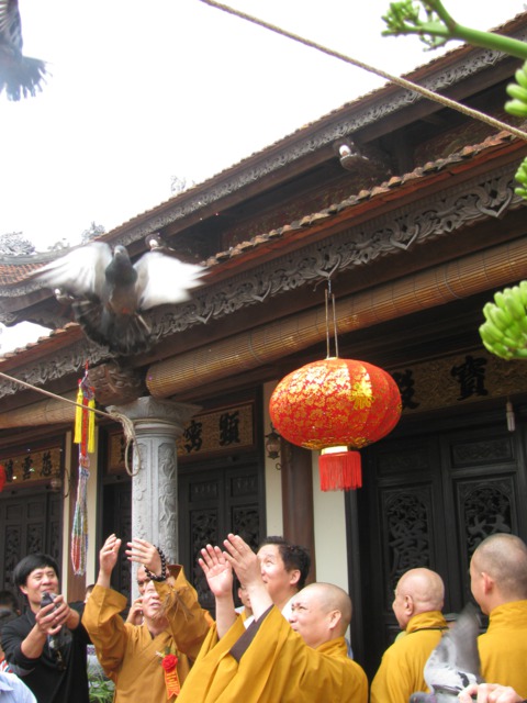 Chư Tôn đức chứng minh đã cắt băng khánh thành, thả chim bồ câu, bóng bay cầu nguyện hòa bình, chúng sinh an lạc, niêm hương lễ Phật tại chính điện.
