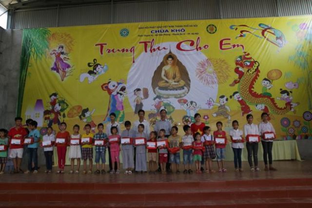 Phát biểu khai mạc, sư thầy thích Đồng Hoà – trưởng BTC buổi lễ đã khuyến tấn các em thanh thiếu niên nhi đồng: “ Hiền tài là nguyên khí của quốc gia”, bởi vậy các em hãy chăm ngoan, học giỏi, áp dụng lời Phật dạy vào đời sống thường ngày của mình một cách thiết thực sẽ có lợi ích lớn, thành đạt lớn… Đặc biệt, trong buổi lễ Ban tổ chức chương trình “Trung thu cho em” đã trao 130 phần quà khuyến học đến các em học sinh có hoàn cảnh khó khăn, đồng bào dân tộc Mường hiếu học. 130 em được nhận phần quà là những tấm gương sáng trong học tập và rèn luyện. Trong số đó, nhiều em có hoàn cảnh hết sức khó khăn, có em mồ côi cha, mẹ, bị ảnh hưởng chất độc màu da cam… nhưng luôn nỗ lực vượt khó vươn lên và đạt thành tích học tập tốt. Mỗi suất quà gồm: Vở viết, bút, đồ dùng học tập, quà bánh, tiền mặt, trị giá 200.000/suất để tặng cho các em hiện đang sống ở vùng núi Ba Vì.