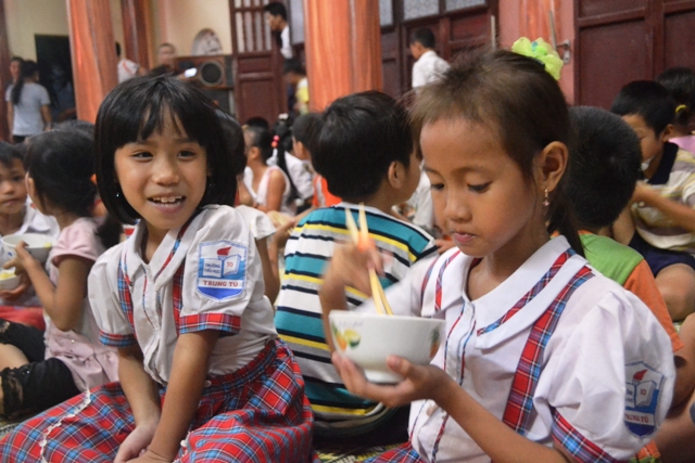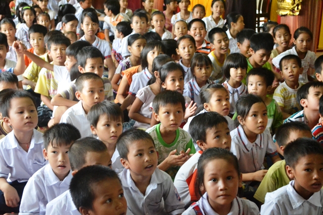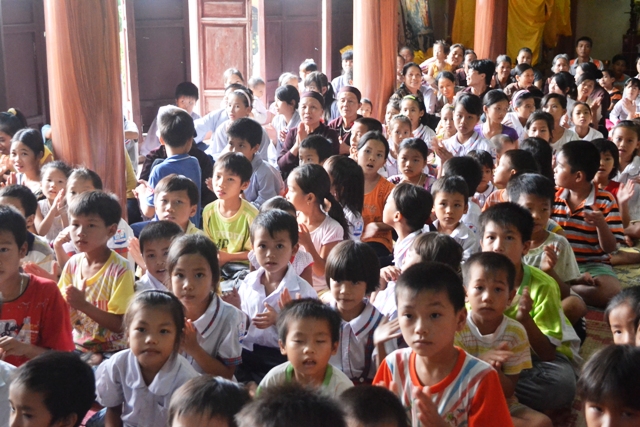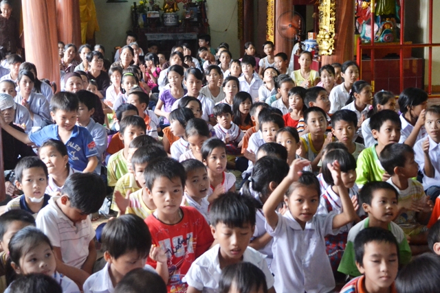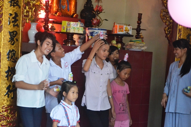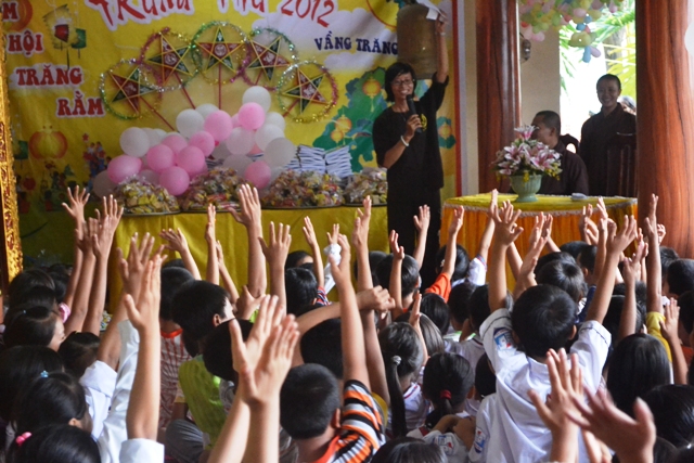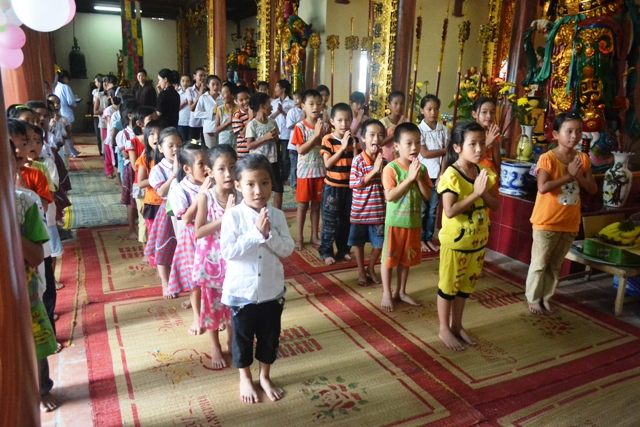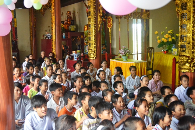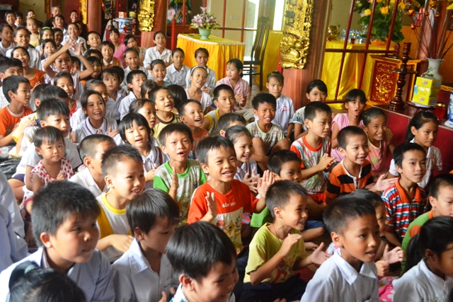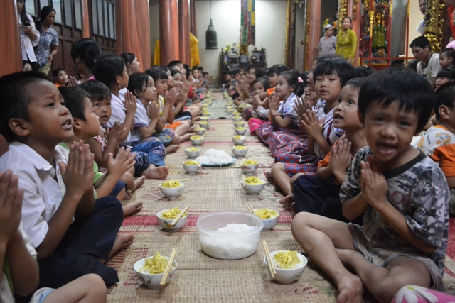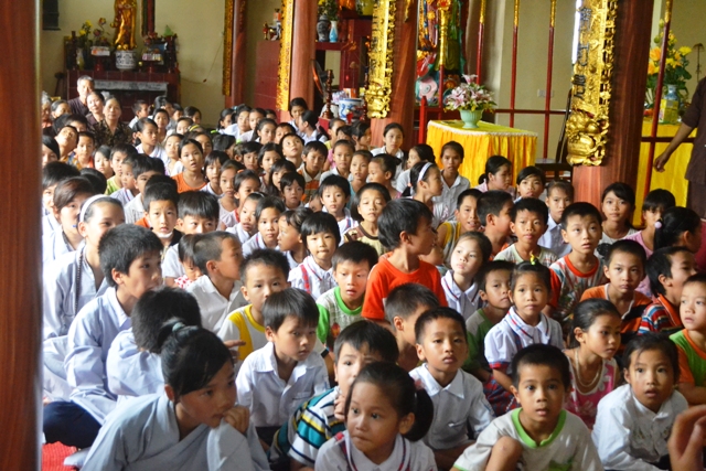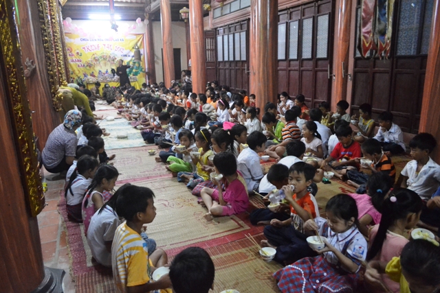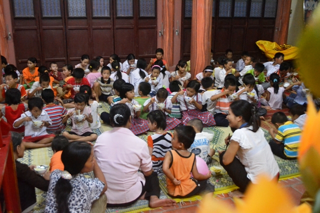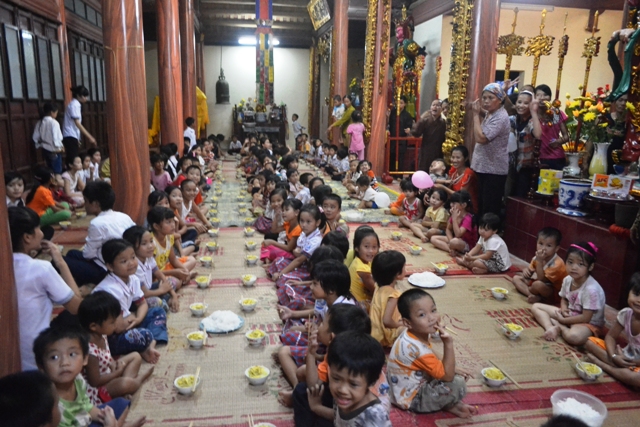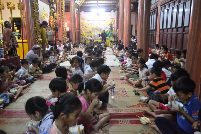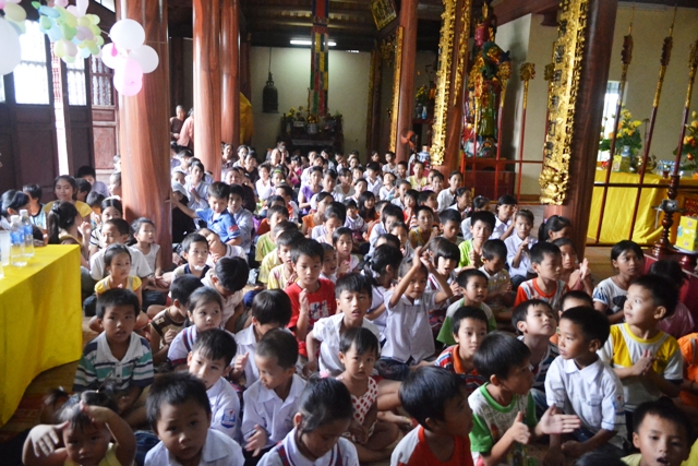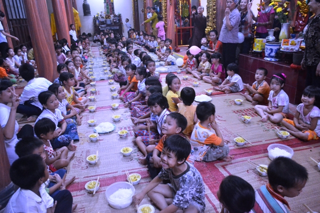 Có thể bạn đã thấy hoặc chưa thấy hình ảnh các em ở chùa quê…như thế này trong ngày Trung thu. Không ồn ào trống, kèn, lân, rồng, quà to, quà lớn, bánh này hay bánh khác…Đơn giản, các em chỉ có niệm Phật là chủ yếu (Trước khi chơi, trước khi ăn, trước khi hát, các em luôn niệm câu “A DI ĐÀ PHẬT”). Bên cạnh đó, có một số hoạt động vui, ý nghĩa. Vậy là cũng thấm đẫm cả một mùa Trung thu lắng đọng rồi. Dưới đây là chùm ảnh được ghi nhận.