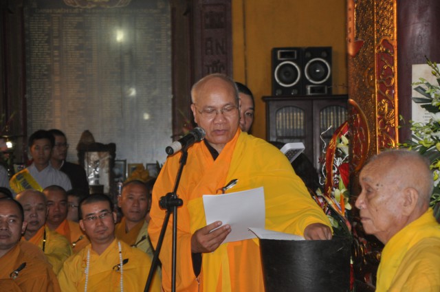 Tại buổi lễ, TT Thích Thanh Đạt – Ủy viên HĐTS GHPGVN – Viện trưởng HVPG Việt Nam tại Hà Nội cung tuyên tiểu sử cố Trưởng lão Hòa thượng Thích Minh Châu, HT Thích Quảng Tùng – Phó chủ tịch HĐTS GHPGVN dâng lời tưởng niệm