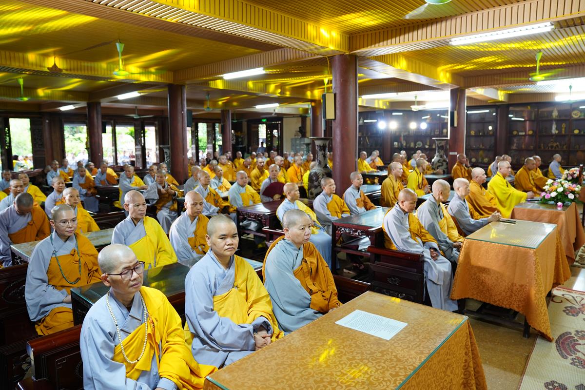 Sau khi đón nhận phẩm vật cúng dàng từ các đoàn Phật tử, Hòa thượng Thích Bảo Nghiêm đã ban đạo từ đến toàn thể hội chúng, nói lên tầm quan trọng của việc an cư kiết hạ và ý nghĩa ngày lễ tự tứ, cũng như tán thán công đức của Phật tử thập phương đã cúng dàng phẩm vật nhân ngày tự tứ. Đây là ngày hoan hỷ nhất của người tu sĩ trong một năm, được gọi là ngày chư Phật hoan hỷ. Bởi lẽ Ngài đã thấy chư Tăng nghiêm trì tịnh giới, ngày đêm sáu thời chuyên tâm tu tập và diễn giải kinh văn. Chư Phật lại mừng thấy rằng tất cả đại chúng an cư trong 3 tháng cấm túc giữ được tinh thần lục hòa, thân cùng ở, miệng không cãi nhau, ý cùng vui, ba nghiệp thanh tịnh, cùng giữ chung giới luật trong phép hạ an cư, cùng nhau tu học, trao đổi với nhau những điều giáo lý được học hỏi cũng như các công việc Phật sự.