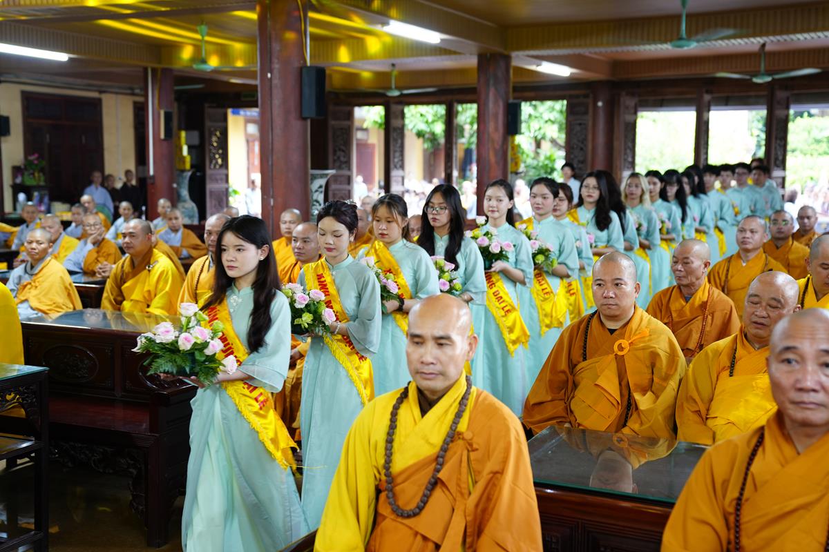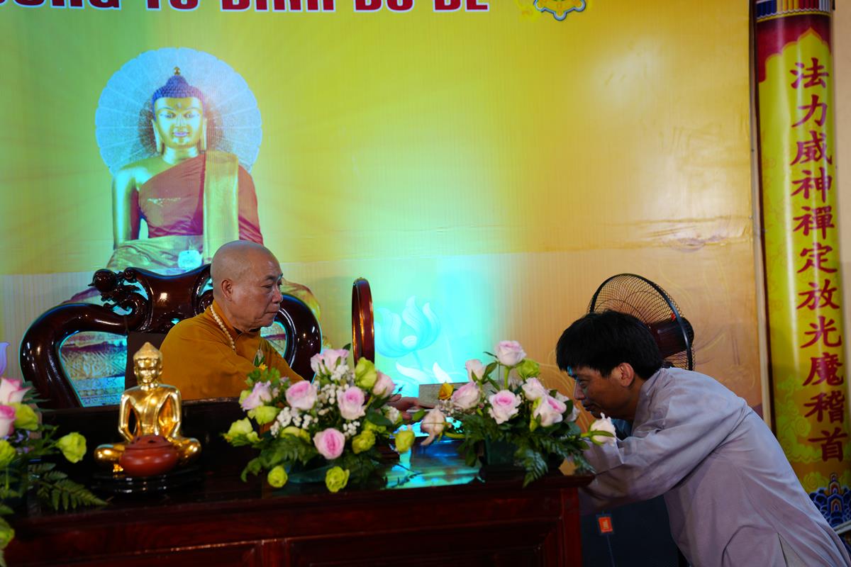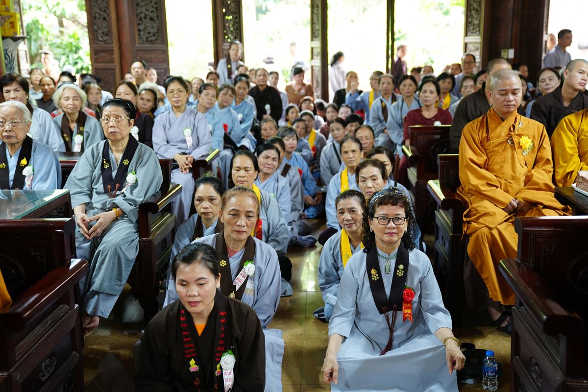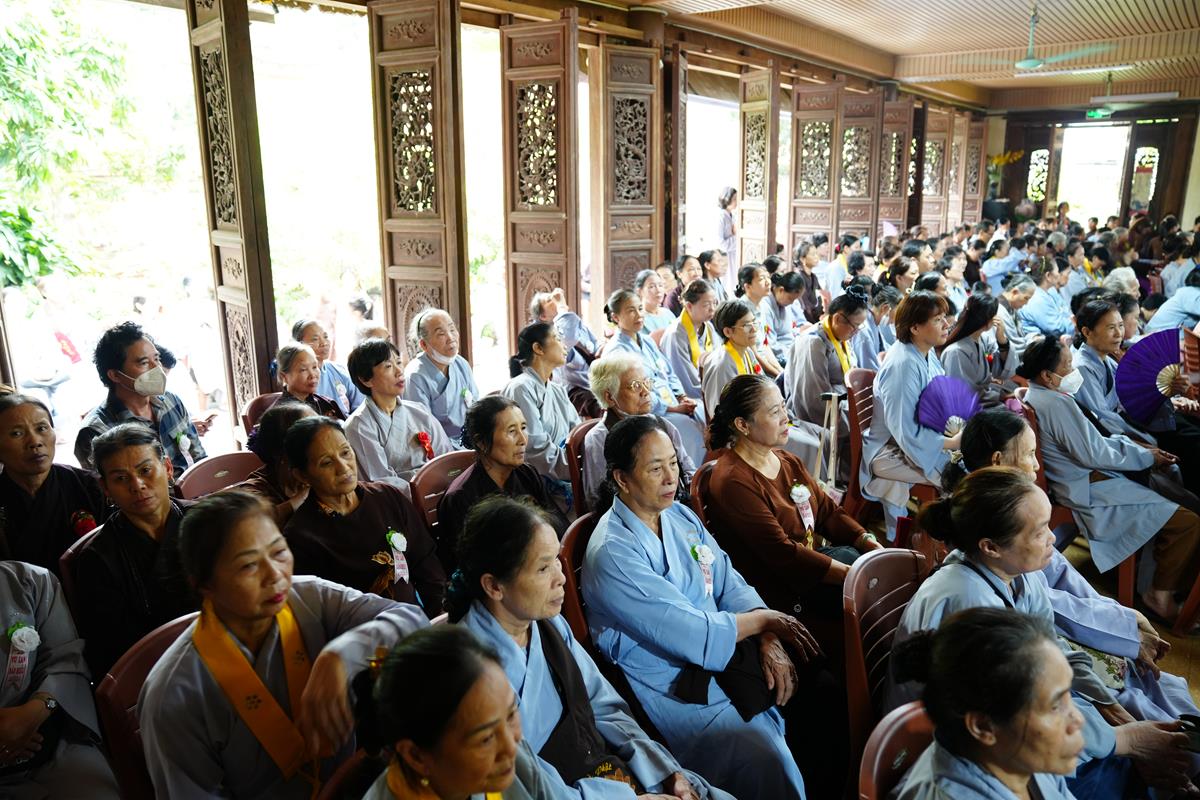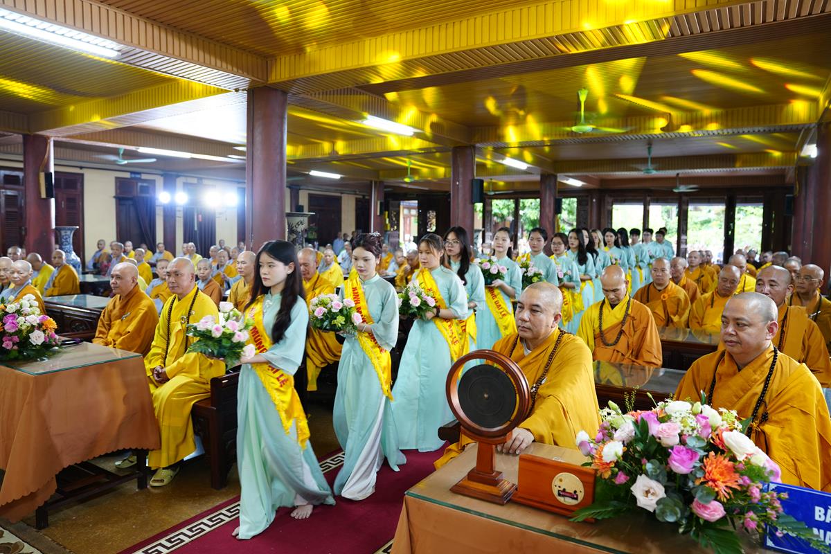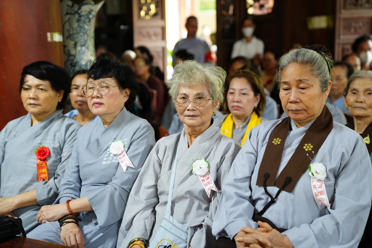 Tại buổi lễ, sau khi chư Tăng Ni trong Ban chức sự và Ban thị giả đối trước Hòa thượng Đường chủ tác bạch hoàn chức sự, Đại diện Phật tử Đạo tràng Pháp Hoa miền Bắc đã dâng lời tác bạch khánh tuế kính mừng Hòa thượng Đường chủ hạ trường cùng chư Tôn đức chứng minh nhân ngày tự tứ. Sau đó kính dâng lên Chư tôn đức đóa hồng vàng giải thoát nhân mùa Vu lan hiếu đạo, thể hiện tấm lòng tri ân của người con Phật với bậc Thầy mô phạm đã đưa những giáo lý Phật đà phổ cập nhân sinh, giúp hàng Phật tử tu tập chuyển hóa, xây dựng một đời sống an vui hạnh phúc.