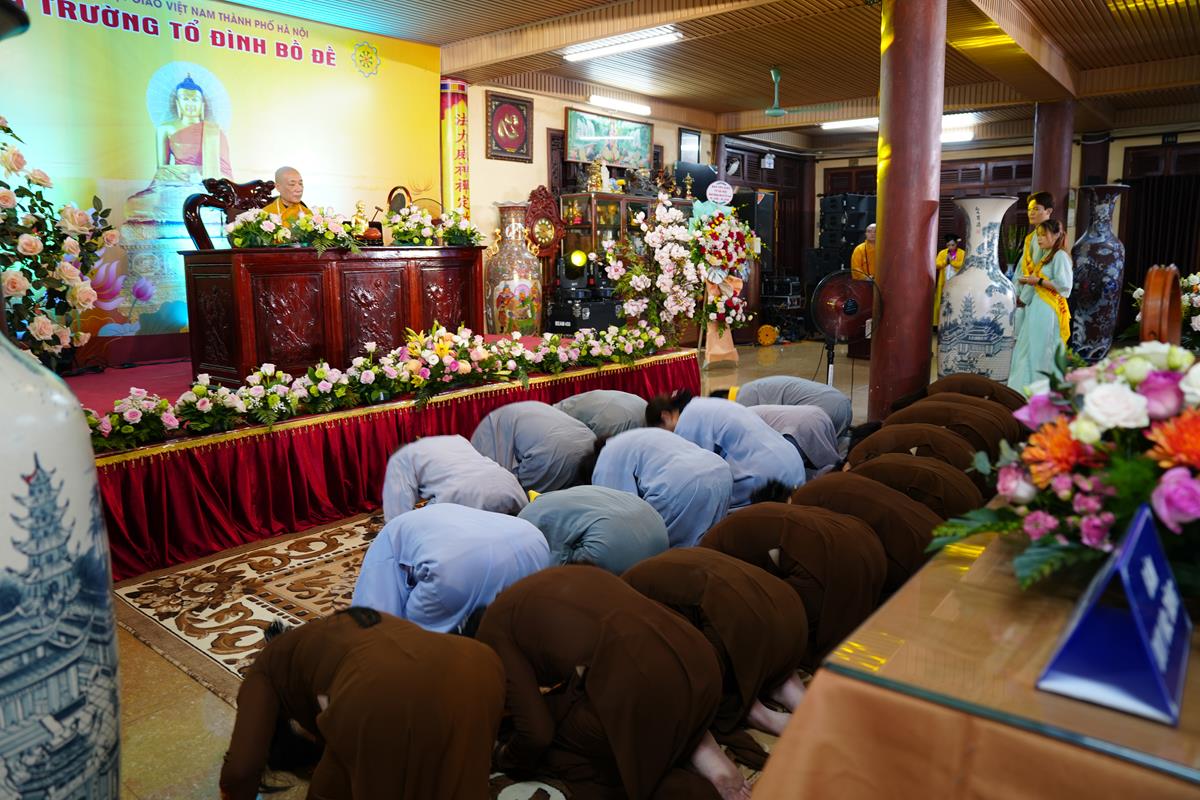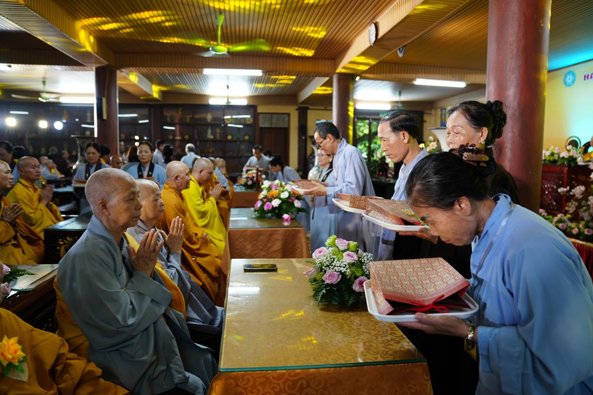 Buổi lễ được đặt dưới sự chủ trì của HT.Thích Bảo Nghiêm – Phó Chủ tịch HĐTS, Trưởng ban Hoằng pháp TƯ GHPGVN – đương vi ngôi Đường chủ hạ trường cùng chư tôn đức Thượng tọa, Đại đức, Ni trưởng, Ni sư trong Hạ trường, đại diện quý đạo hữu Phật tử các đạo tràng về cúng dàng Chư tôn đức.
