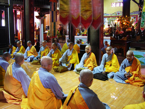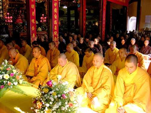 Sau nghi lễ niệm Phật, tụng kinh, TT. Thích Gia Quang phát biểu tóm tăt kết quả Tăng Ni tu học trong 3 tháng an cư kiết hạ, HT. Thích Thanh Chỉnh ban đạo từ tán thán công đức và động viên Tăng Ni Phật tử cố gắng nỗ lực đem tâm huyết phụng sự Đạo Pháp ngày thêm tăng trưởng.