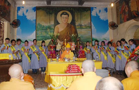 Chứng minh buổi lễ có HT Thích Thanh Bích – HĐCM GHPGVN;TT Thích Bảo Nghiêm – Phó chủ tịch HĐTS TW GHPGVN – Trưởng ban Hoằng pháp TW – Trưởng BTS Thành hội Phật giáo Hà Nội cùng chư tôn đức Phó BTS Thành hội Phật giáo Hà Nội và chư tôn đức TT Phó BTS Thành hội Phật giáo Hà Nội cùng Tăng Ni Thành hội Phật giáo Hà Nội.