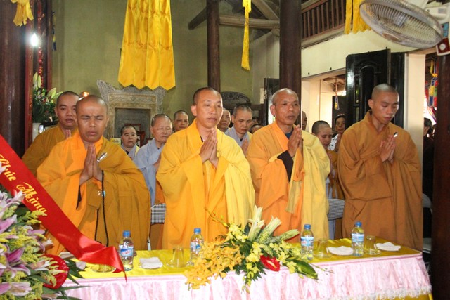 Chứng minh buổi lễ có: HT. Thích Bảo Nghiêm – Phó Chủ tịch HĐTS kiêm Trưởng ban Hoằng pháp TW GHPGVN, Trưởng BTS GHPGVN Tp.Hà Nội, chủ giảng Hạ trường; TT.Thích Thanh Chính – Phó Trưởng ban Thường trực BTS GHPGVN Tp.Hà Nội cùng Chư tôn đức tăng, ni trong toàn hạ trường cùng về tham dự.