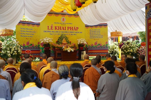 Tại đây, đại diện chư hành giả an cư đã ra làm lễ Hòa thượng Đường chủ và ban giảng sư để cung thỉnh ban giảng sư thùy từ hứa khả giảng pháp cho 3 tháng hạ an cư tại tổ đình Vạn Phúc.