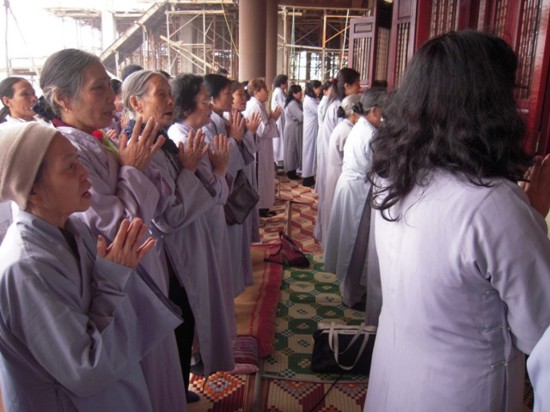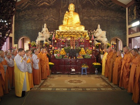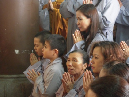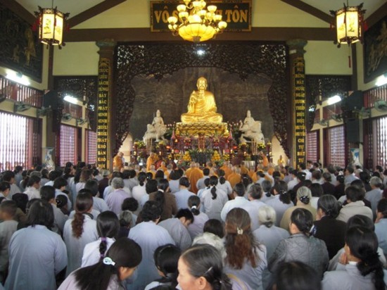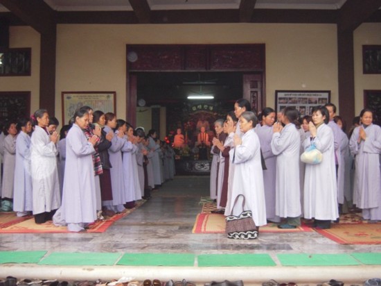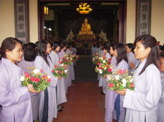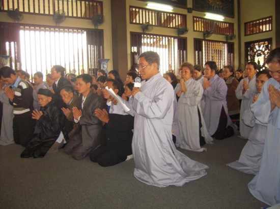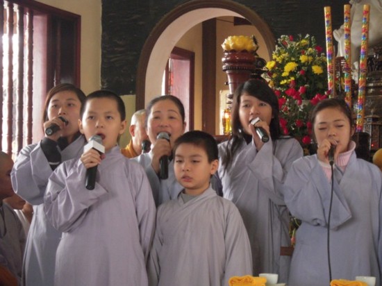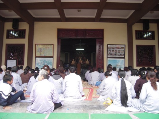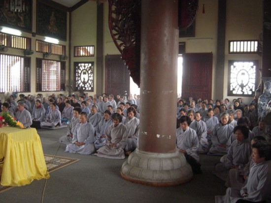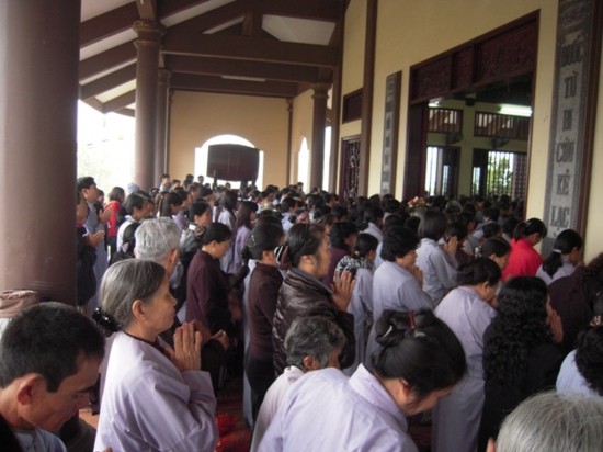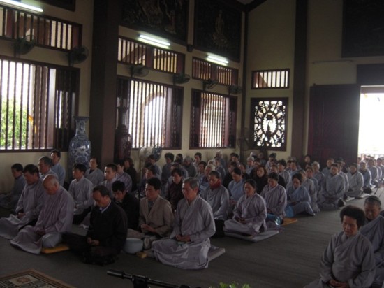 Đúng 8h, toàn thể đạo tràng trang nghiêm pháp phục cung nghinh chư Tôn đức Tăng Ni quang lâm chánh điện. Buổi lễ được bắt đầu với khoá lễ cầu an đầu năm cho Phật tử. Sau phần nghi thức và lễ tác bạch thỉnh pháp của đại diện Phật tử các Đạo tràng, toàn thể Tăng Ni Phật tử đã được nghe một thời pháp của TT. Thích Bảo Nghiêm. T