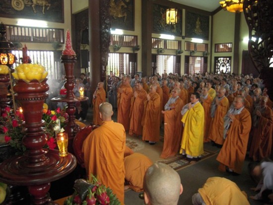 Thượng toạ cũng khen ngợi sự lớn mạnh của các đạo tràng và ban thời pháp với chủ đề “Phúc Tuệ”.